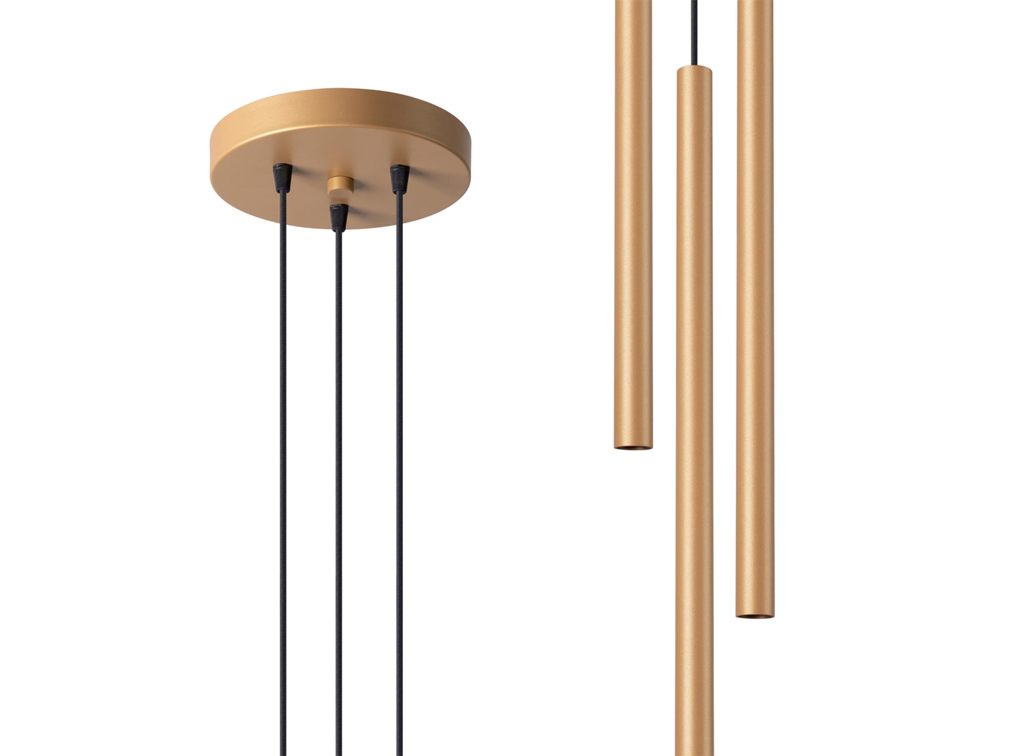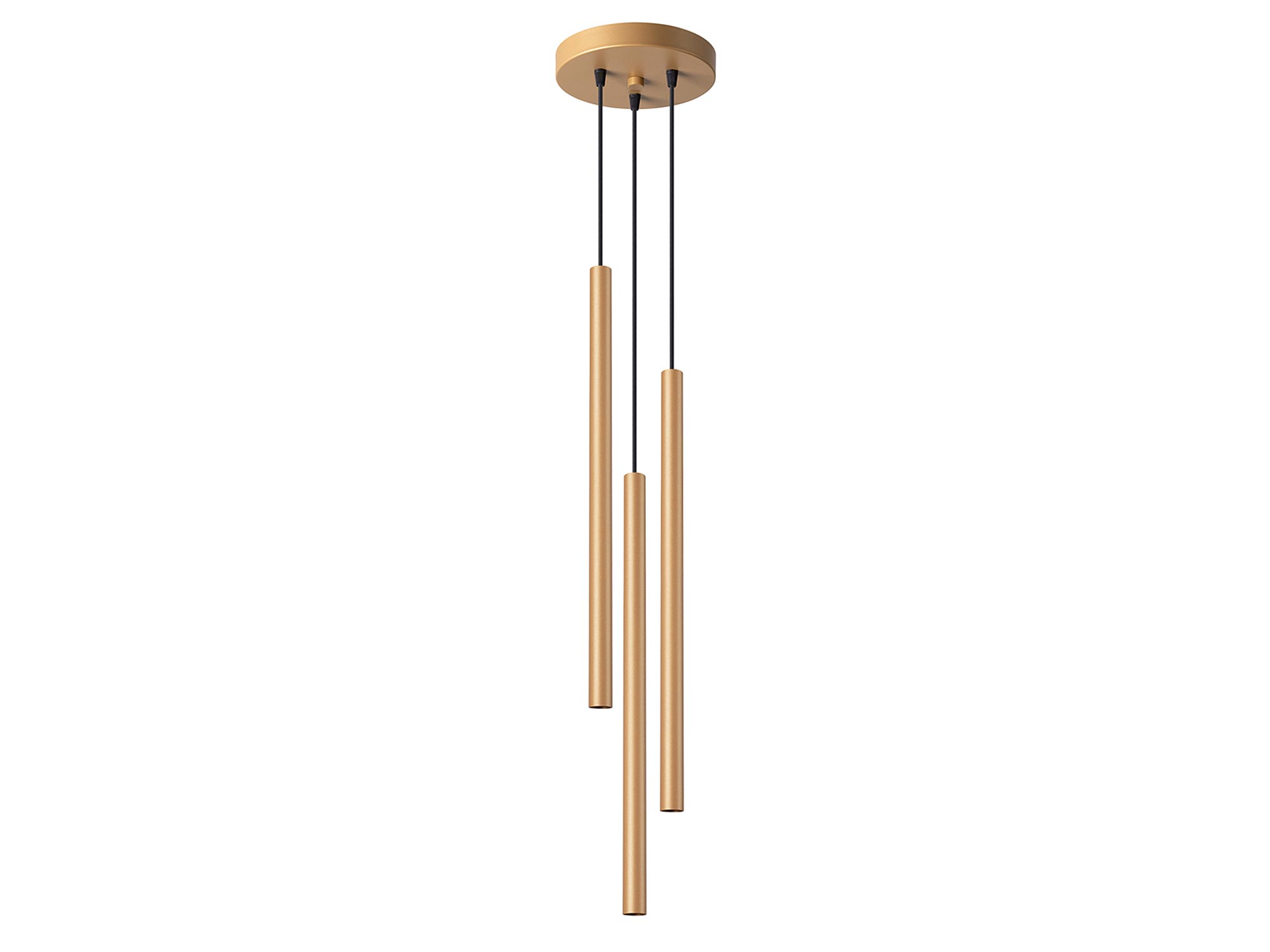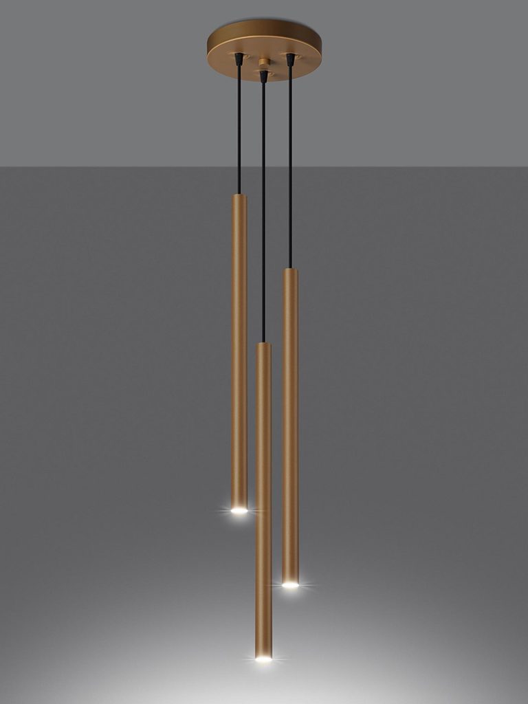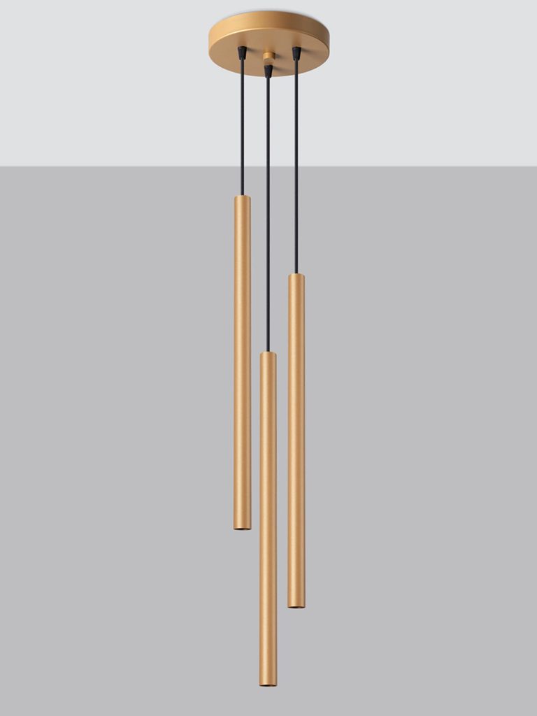Zestaw trzech złotych tub LED zawieszonych kaskadowo