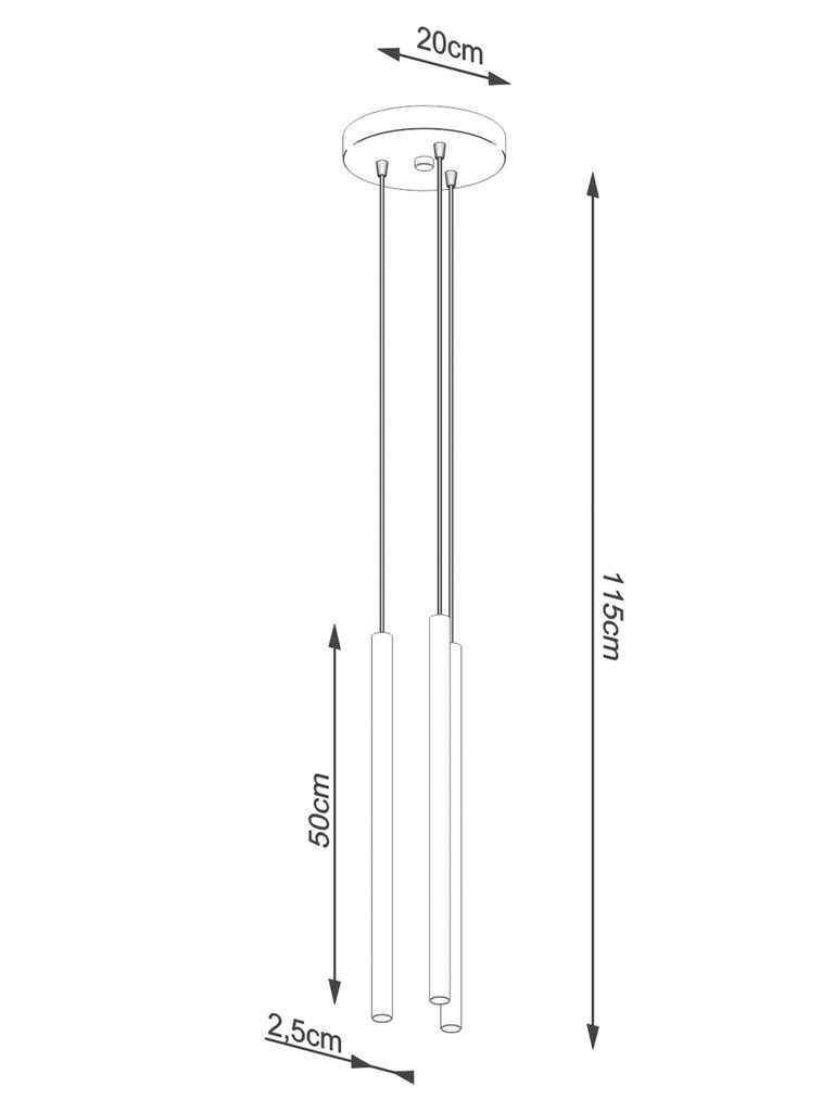 Złote tuby LED wiszące na czarnych przewodach, wizualizacja