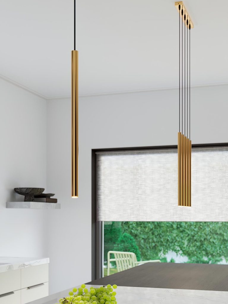 Pojedyncza złota tuba LED nad oknem w kuchni