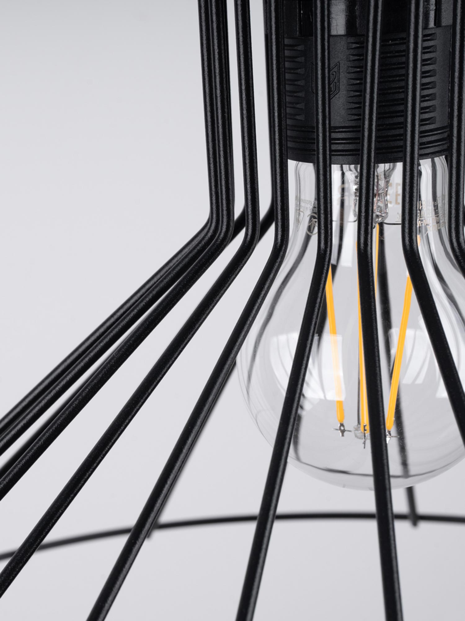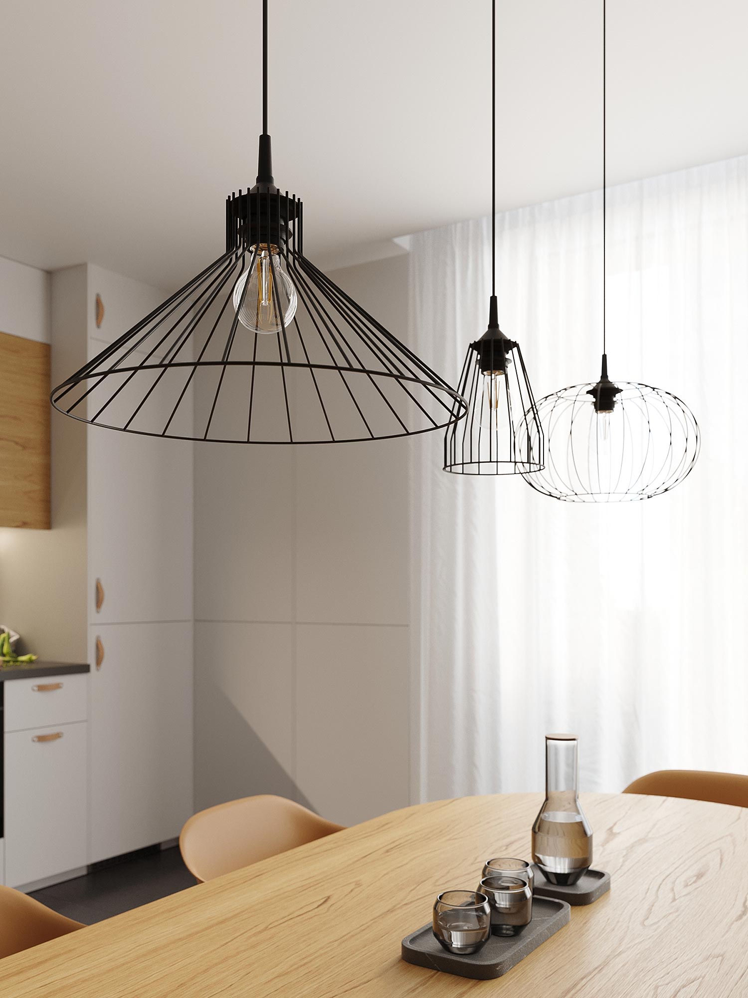 Wykonana z najwyższej jakości stali, Lampa Wisząca EDANA charakteryzuje się trwałością i stabilnością. Jej czarny kolor dodaje wnętrzu elegancji, a nowoczesny design sprawia, że jest to wyjątkowy element dekoracyjny. Dzięki zastosowaniu żarówki LED typu E27 (nie dołączonej w zestawie), lampa zapewnia efektywne oświetlenie, będąc jednocześnie oszczędną w zużyciu energii.