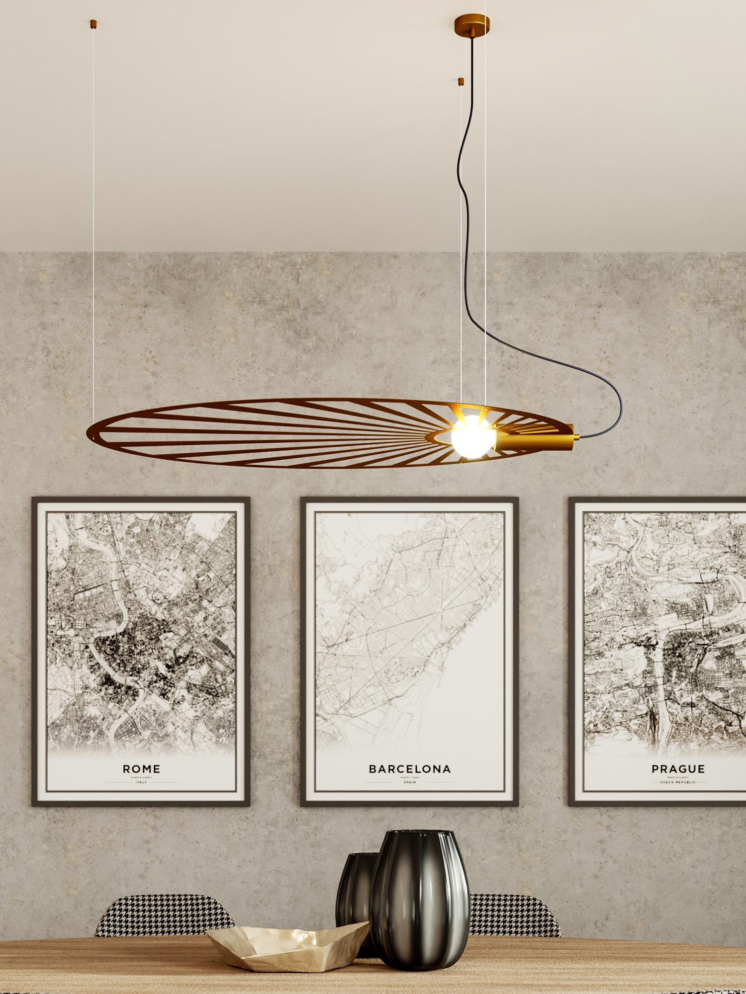 Jeżeli poszukujesz elementu, który doda twojemu wnętrzu subtelnego uroku i niezrównanego stylu, Lampa Wisząca Stalowa LIVIA spełni wszystkie Twoje oczekiwania. Inspiracją dla jej projektanta była fascynująca podróż do świata skandynawskiego minimalizmu, gdzie dominują proste kształty i bliskość natury. „LIVIA”, co w języku fińskim oznacza „liść”, idealnie wpasowuje się w te koncepcje, dostarczając produkt, który pięknie odzwierciedla doskonałość formy i prostotę designu.