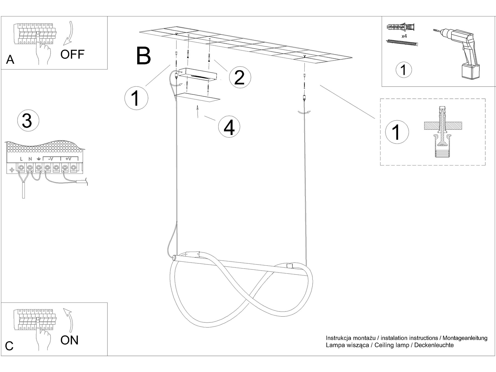 Wymiary techniczne oprawy LED z funkcją zwisu sufitowego