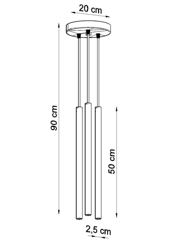 Techniczny schemat lampy LED o długości przewodów 90 i 50 cm