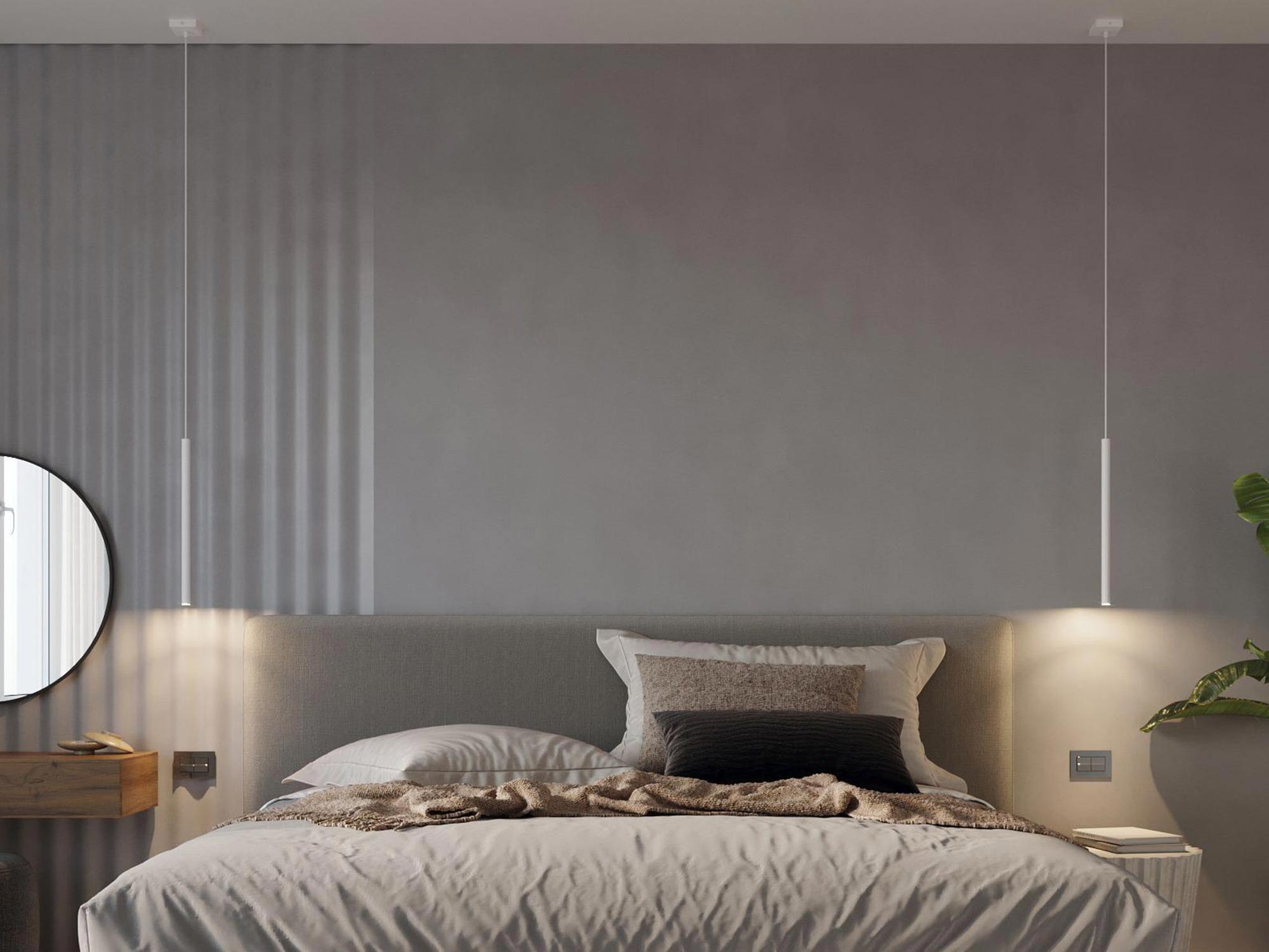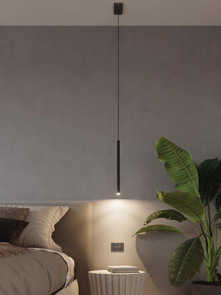 Aranżacja sypialni z nowoczesnym czarnym kinkietem LED
