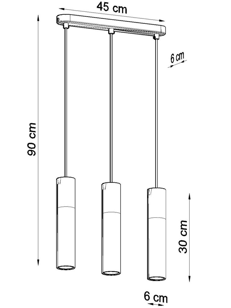 Schemat techniczny lampy wiszącej z wymiarami 30x90 cm