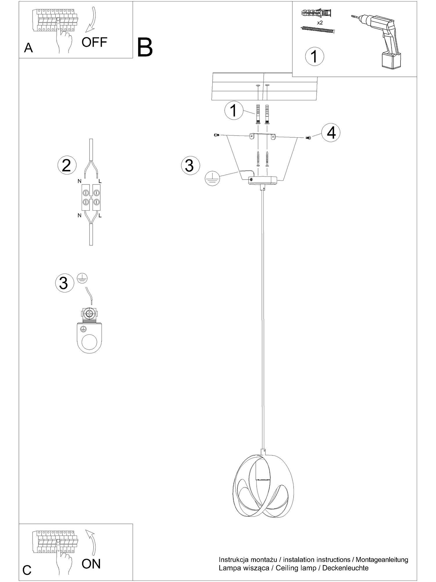 Lampa wisząca TUNDRA 1 jest wyposażona w gniazdo E27, przeznaczone dla żarówki o maksymalnej mocy 60W lub 15W w przypadku wersji LED. Napięcie zasilania wynosi ~220-230V przy częstotliwości 50-60Hz. Lampa posiada klasę ochrony IP20, co oznacza, że jest odporna na przedmioty o wielkości powyżej 12,5 mm i nie jest odporna na wodę.