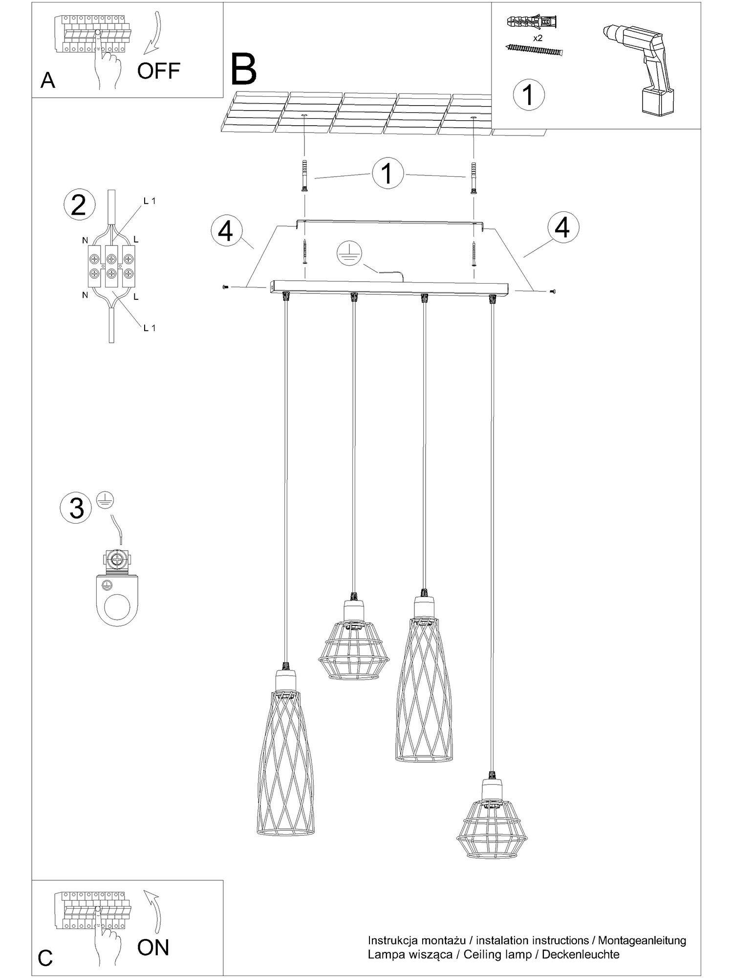 Wykonana z najwyższej jakości stali, Wisząca Lampa NOCTA 4L charakteryzuje się trwałością i stabilnością. Jej czarny kolor podkreśla elegancję, a nowoczesny design czyni ją wyjątkowym elementem każdego wnętrza. Dzięki czterem źródłom światła LED typu E27 (nie dołączonym w zestawie), lampa zapewnia odpowiednie oświetlenie, będąc jednocześnie oszczędną w zużyciu energii.