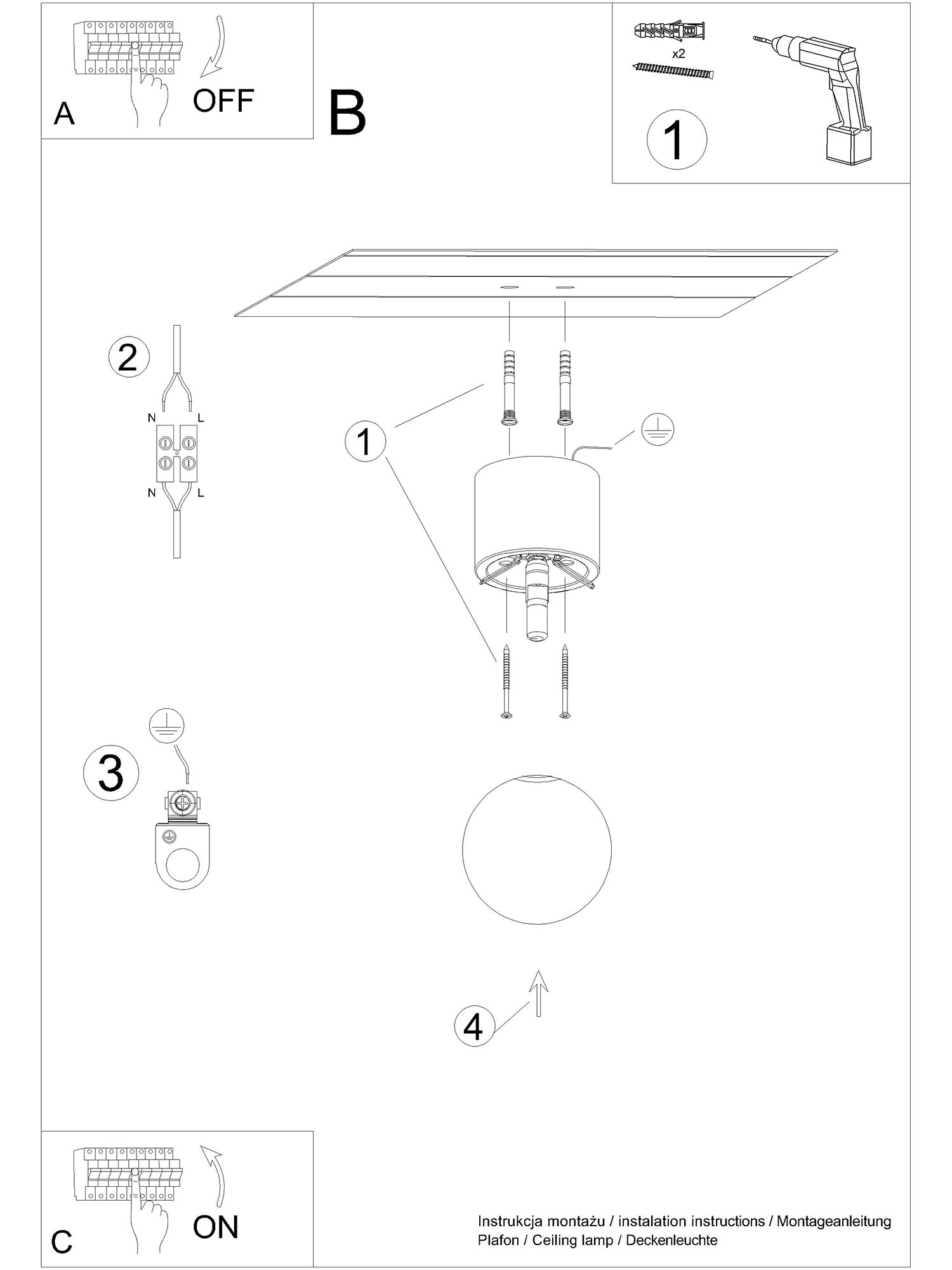 Lampa sufitowa z kulą LED zamontowana na tle szarej ściany