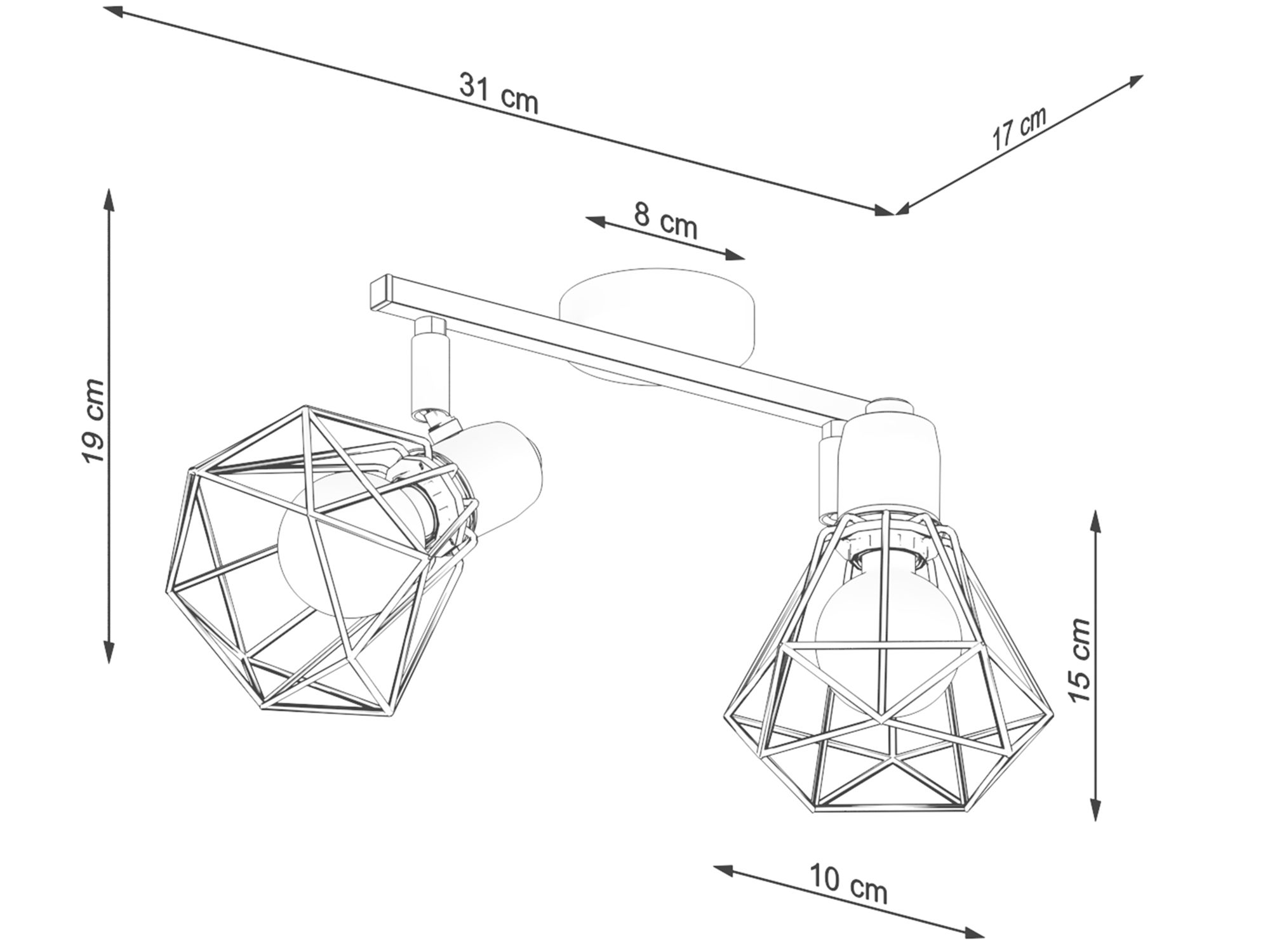 KALISTO 2, podobnie jak inne produkty z tej serii, nawiązuje designem do przemysłowego wzornictwa. Proste, metalowe elementy i oryginalny kształt opraw tworzą wyjątkową kompozycję, która znajdzie zastosowanie w każdym wnętrzu.