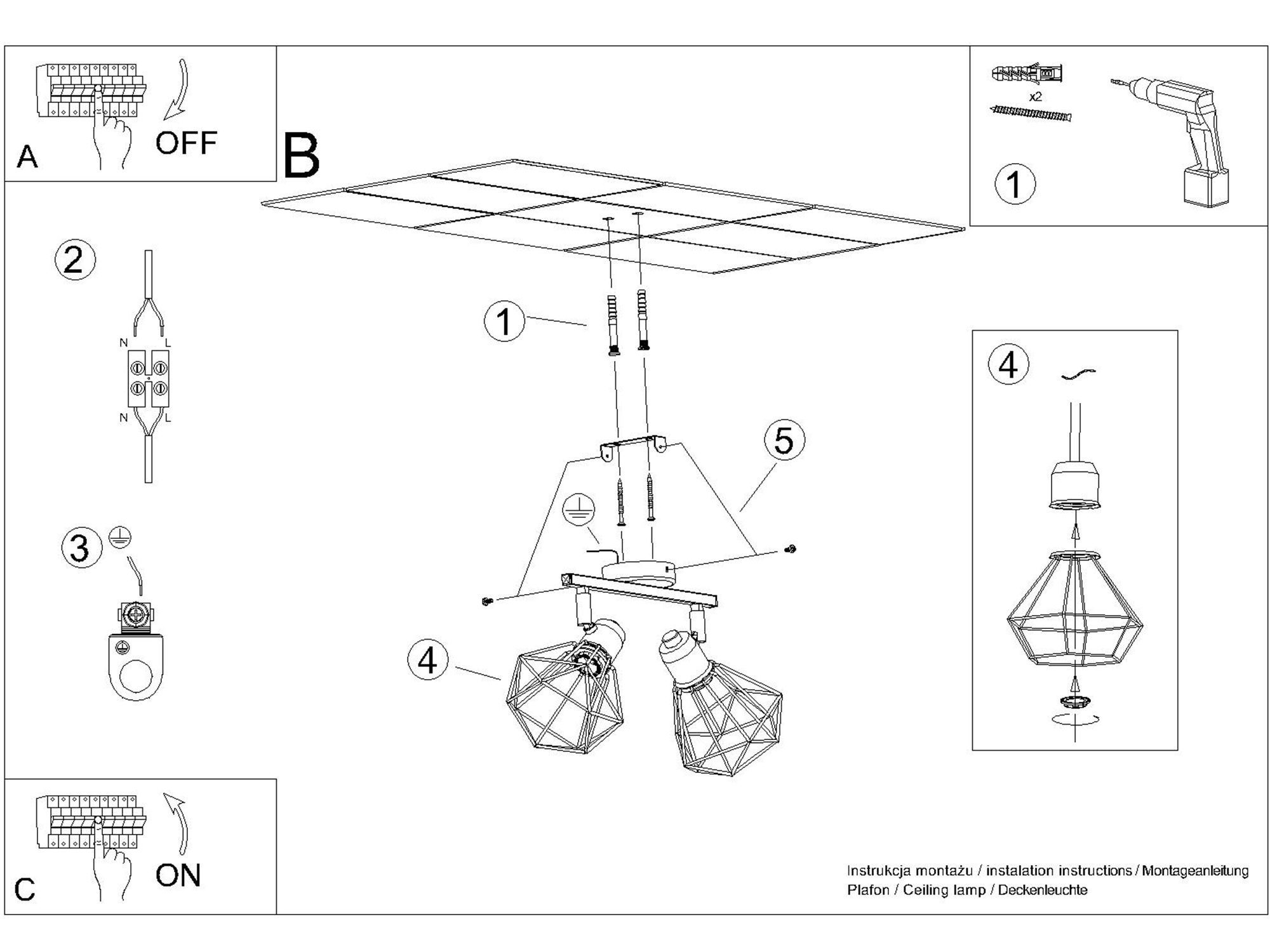 - Materiał: Wykonany z solidnej stali, plafon KALISTO 2 jest wytrzymały i długotrwały.