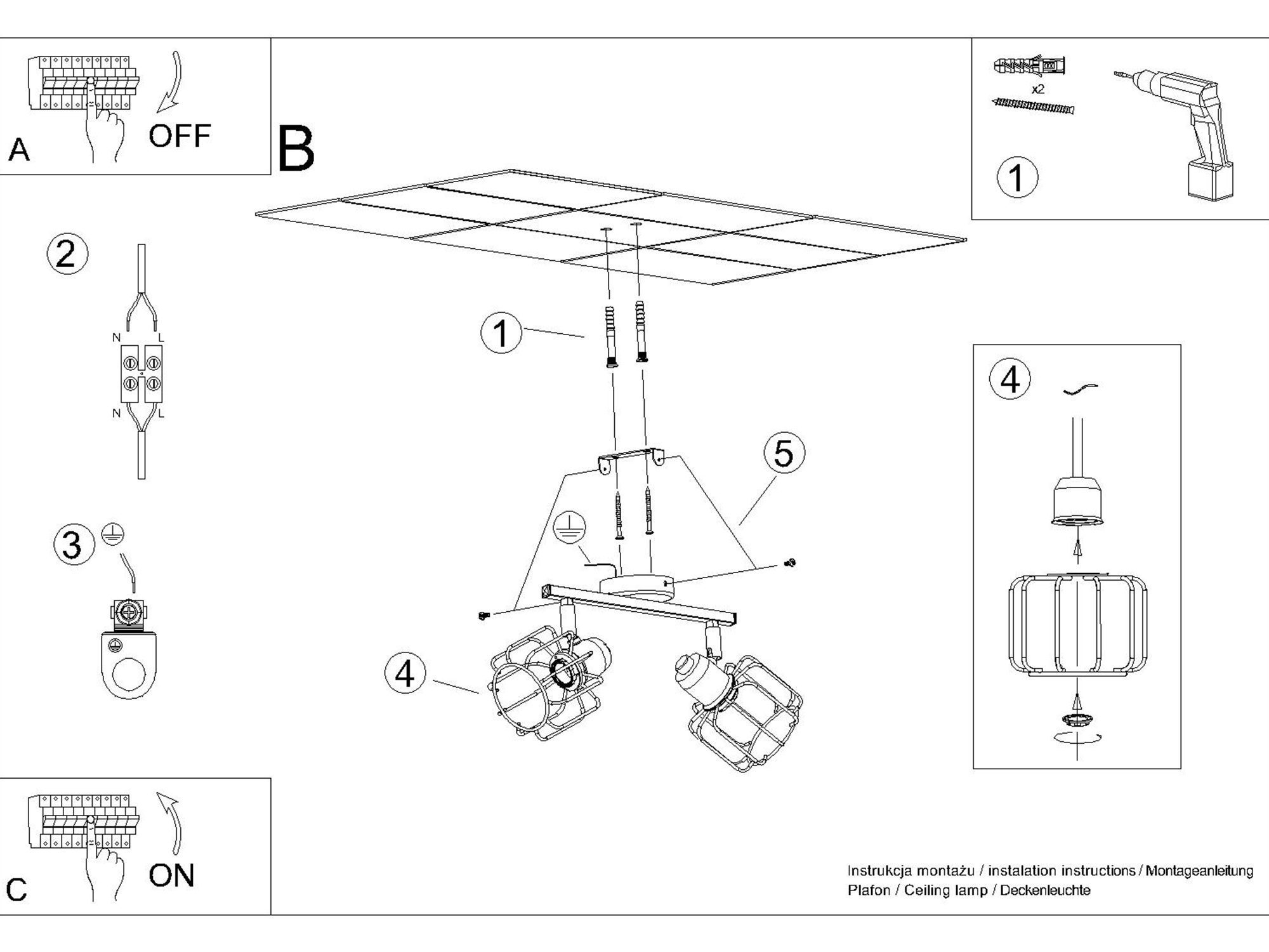 • Materiał: Stal – mocny, trwały materiał, który dodaje plafonowi przemysłowego charakteru.
