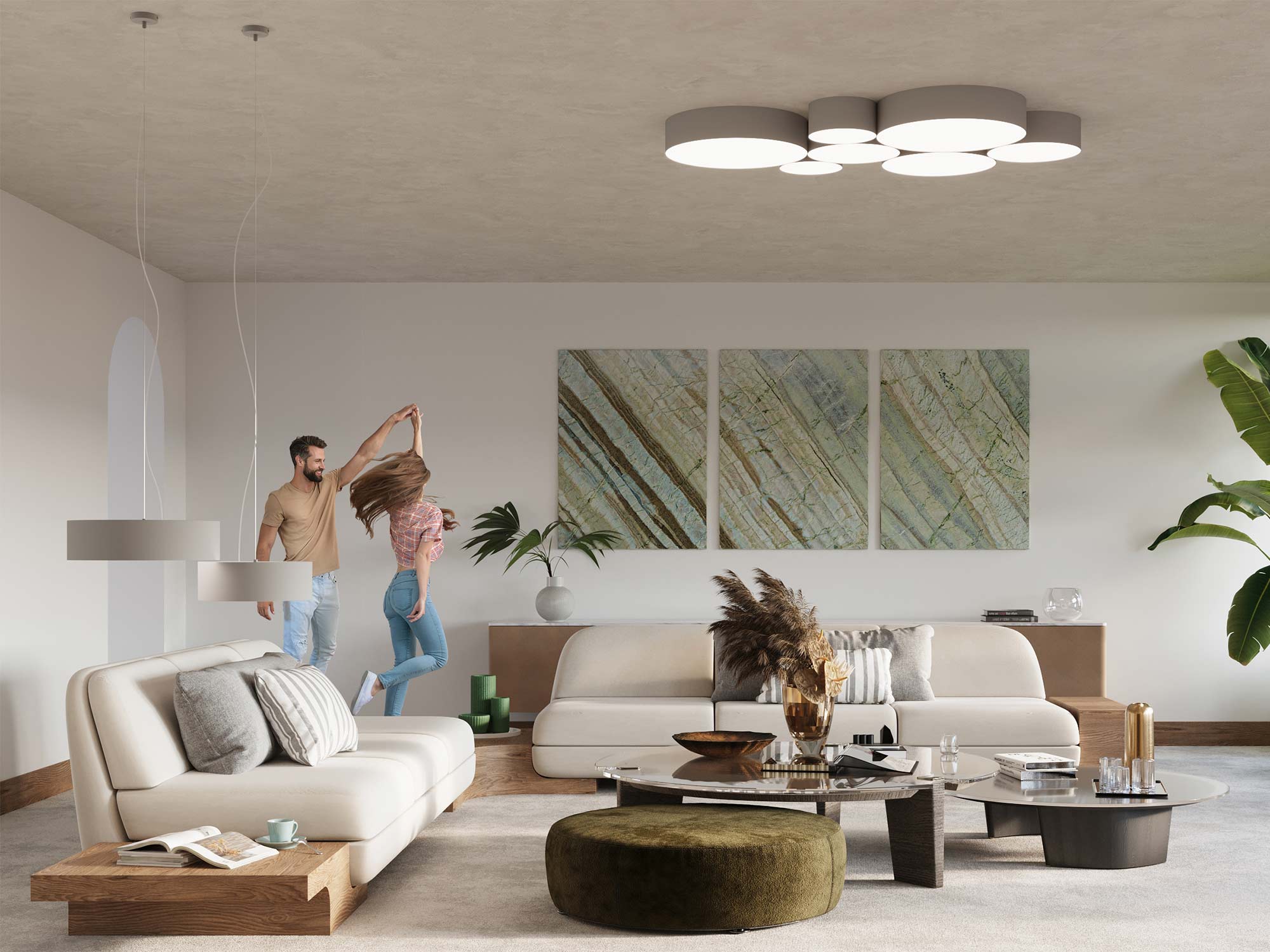 - Uniwersalność: Dzięki dostępności w różnych wariantach kolorystycznych i wielkościach, lampa sufitowa INFINITO 25 pozwala na tworzenie różnorodnych układów na suficie, idealnych dla każdego pomieszczenia.