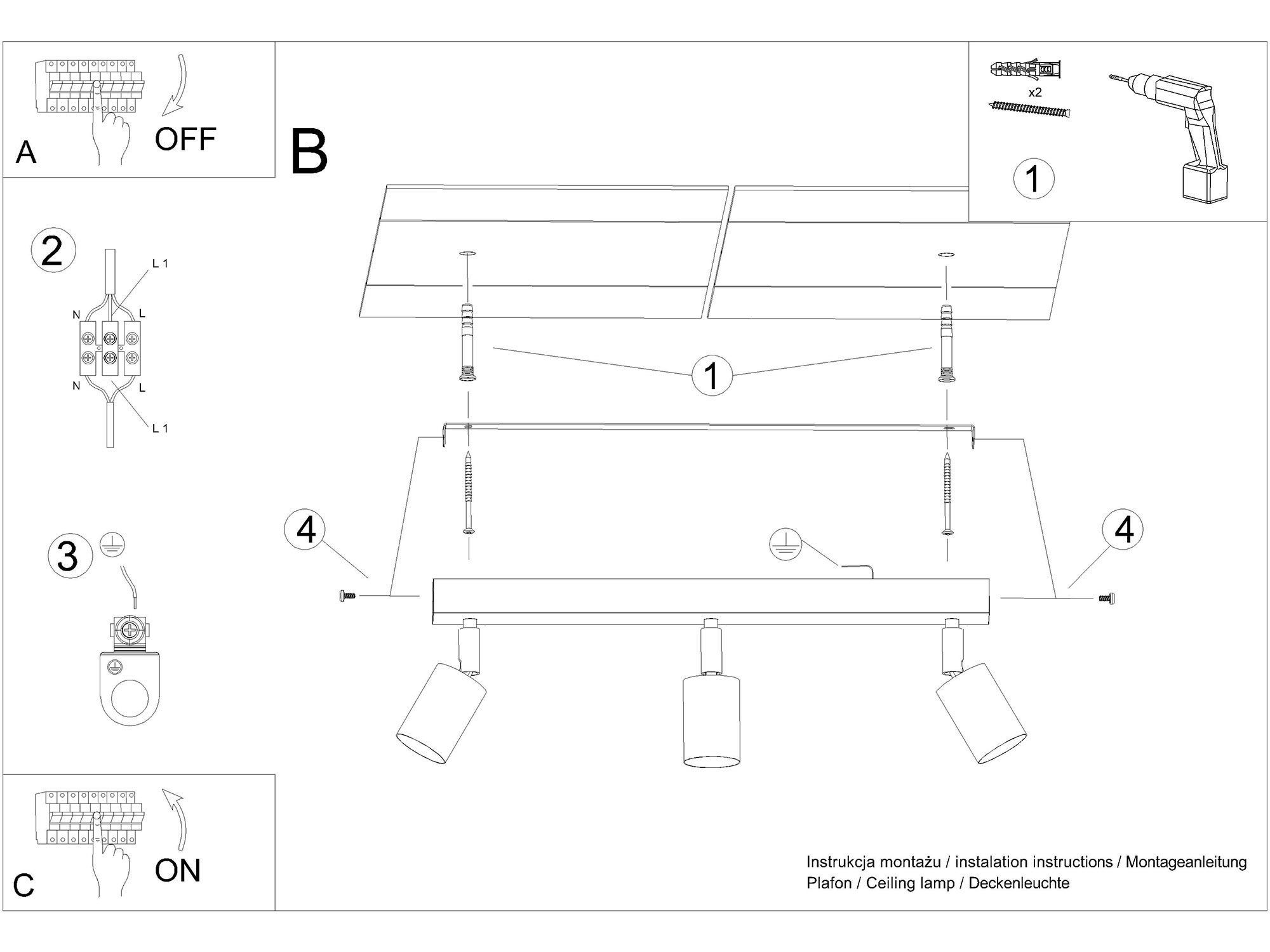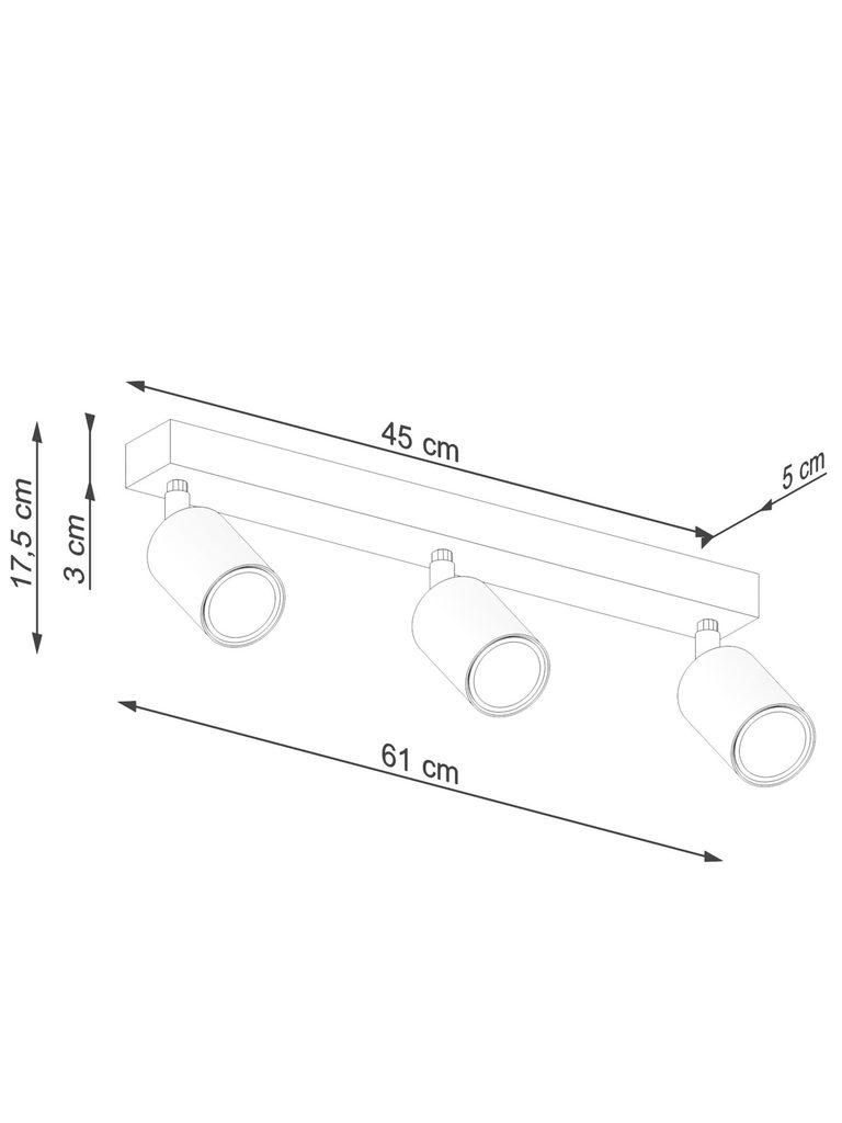 - Typ Źródła Światła: GU10, 3x max 10W LED (żarówki nie wchodzą w skład zestawu).