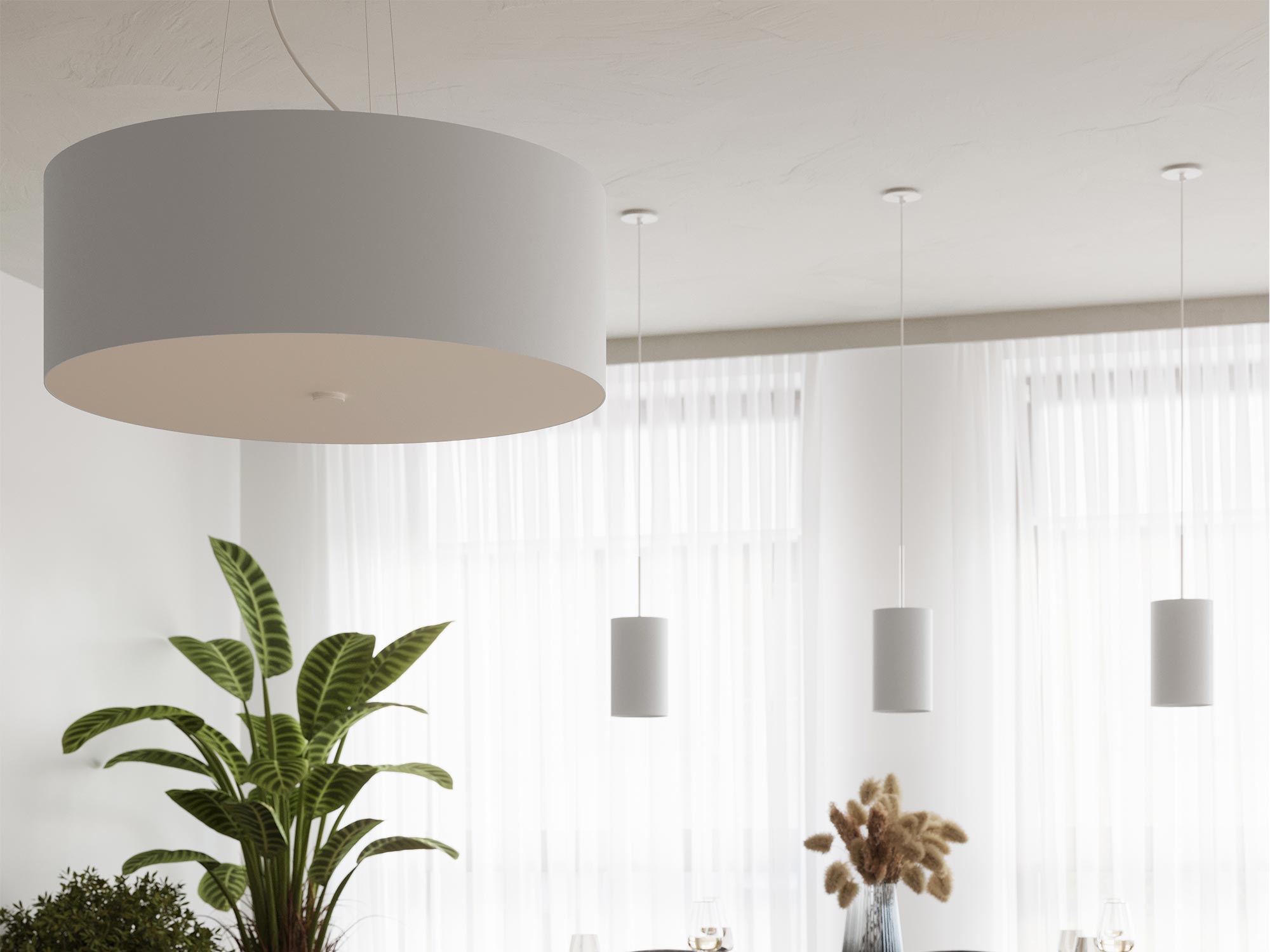 Elegancki abażur beżowy do zawieszenia w jadalni