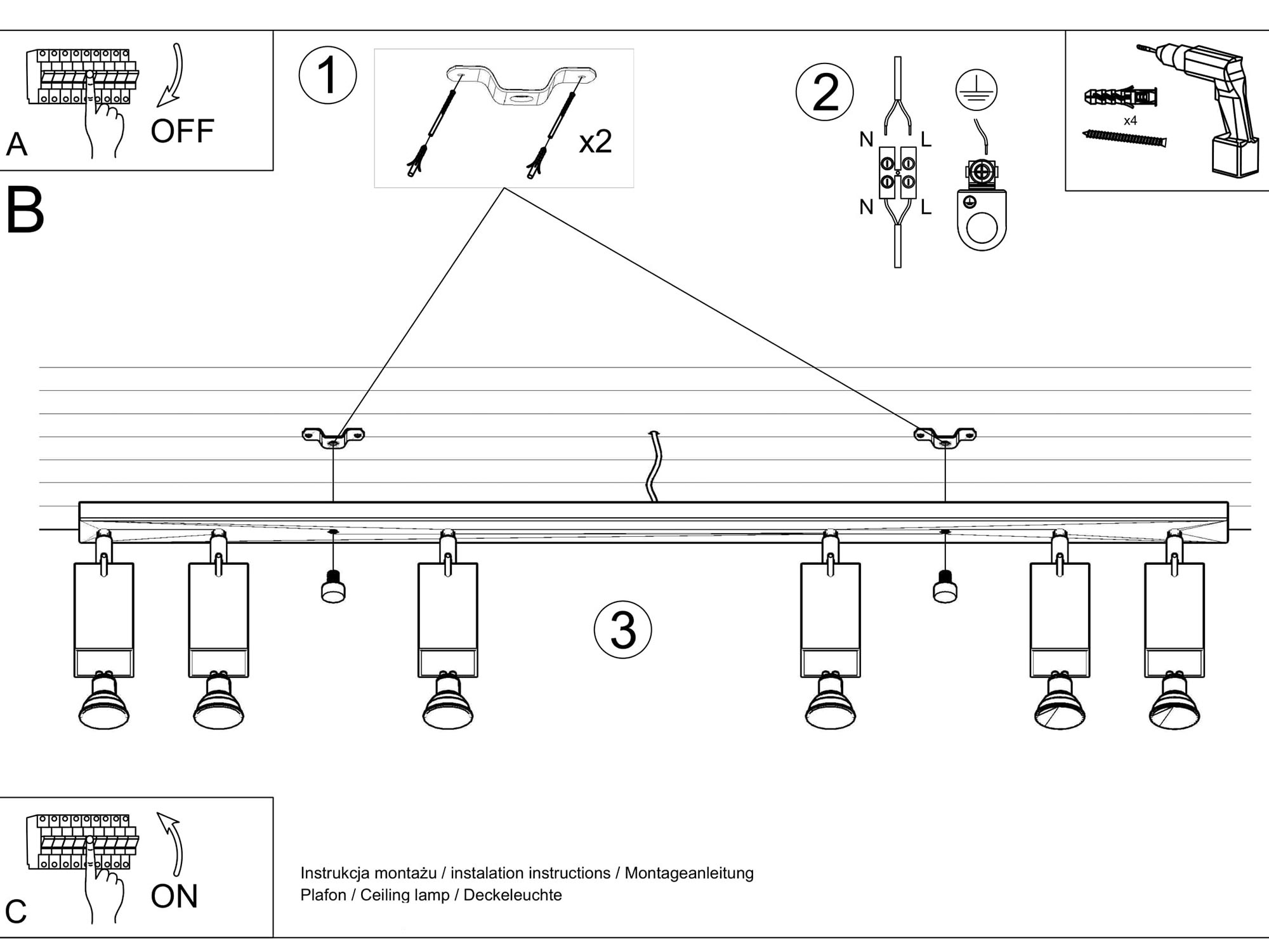 • Źródło światła: GU10, 6x40W, 6x12W LED, 50-60Hz, ~220-230V