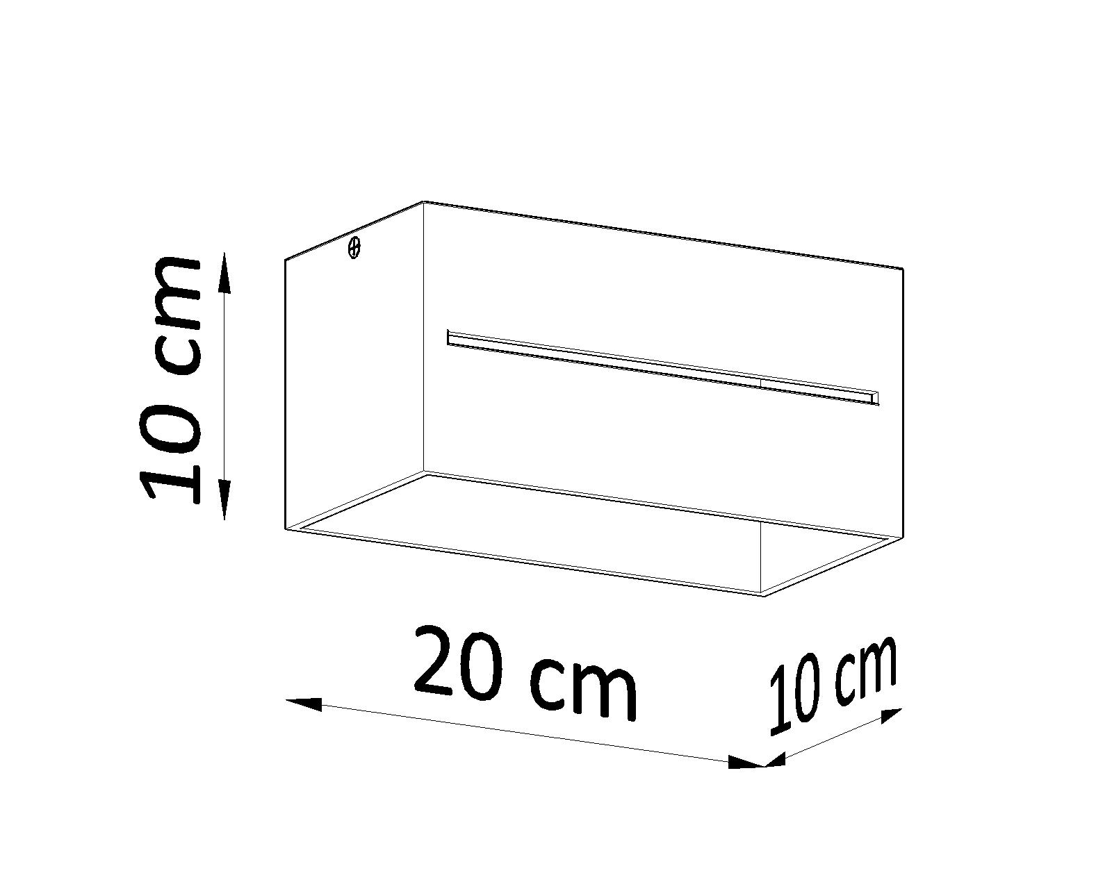 Techniczny szkic oprawy LED o wymiarach 20x10 cm