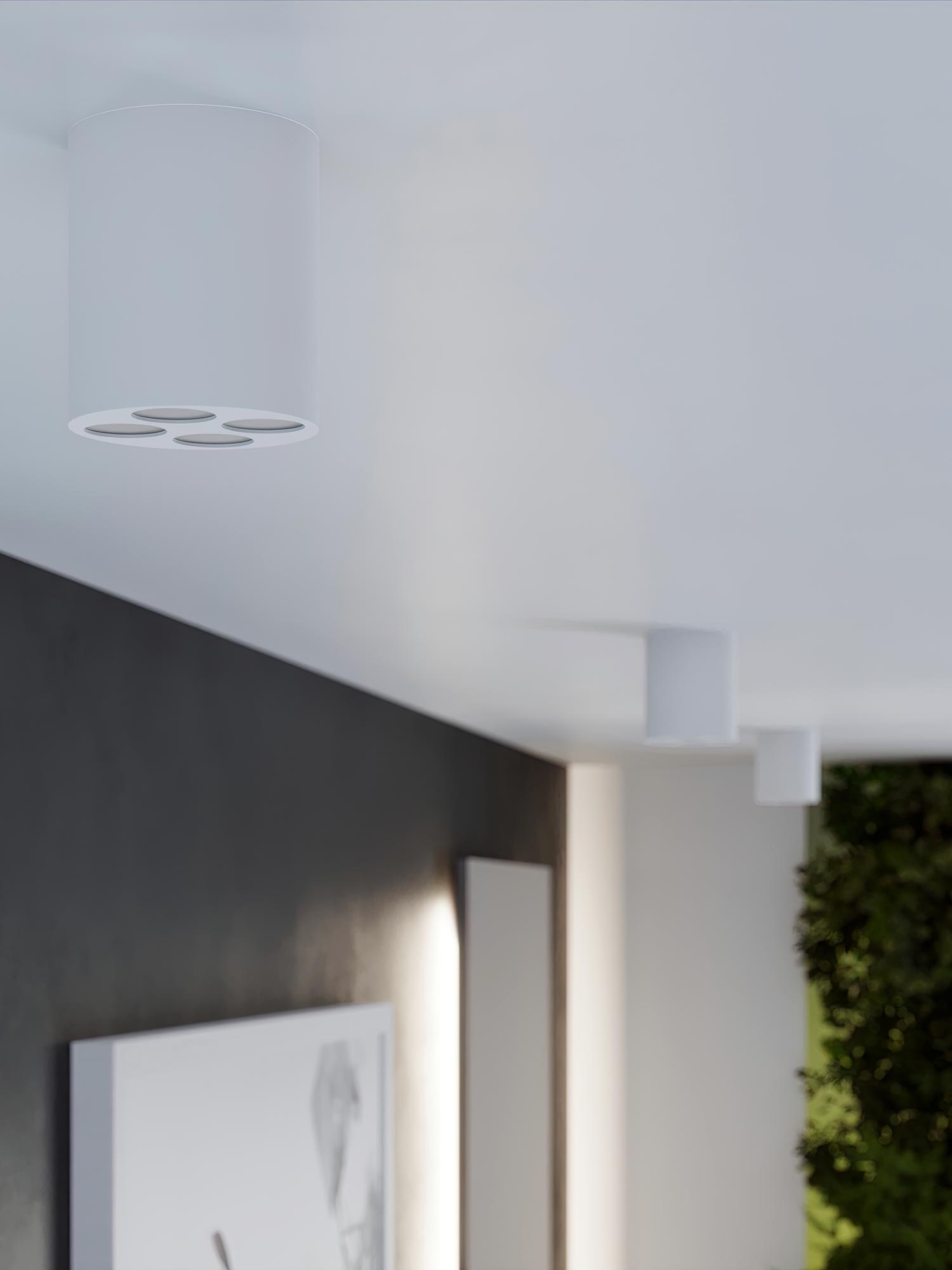 Nowoczesny korytarz z czarnymi lampami punktowymi LED
