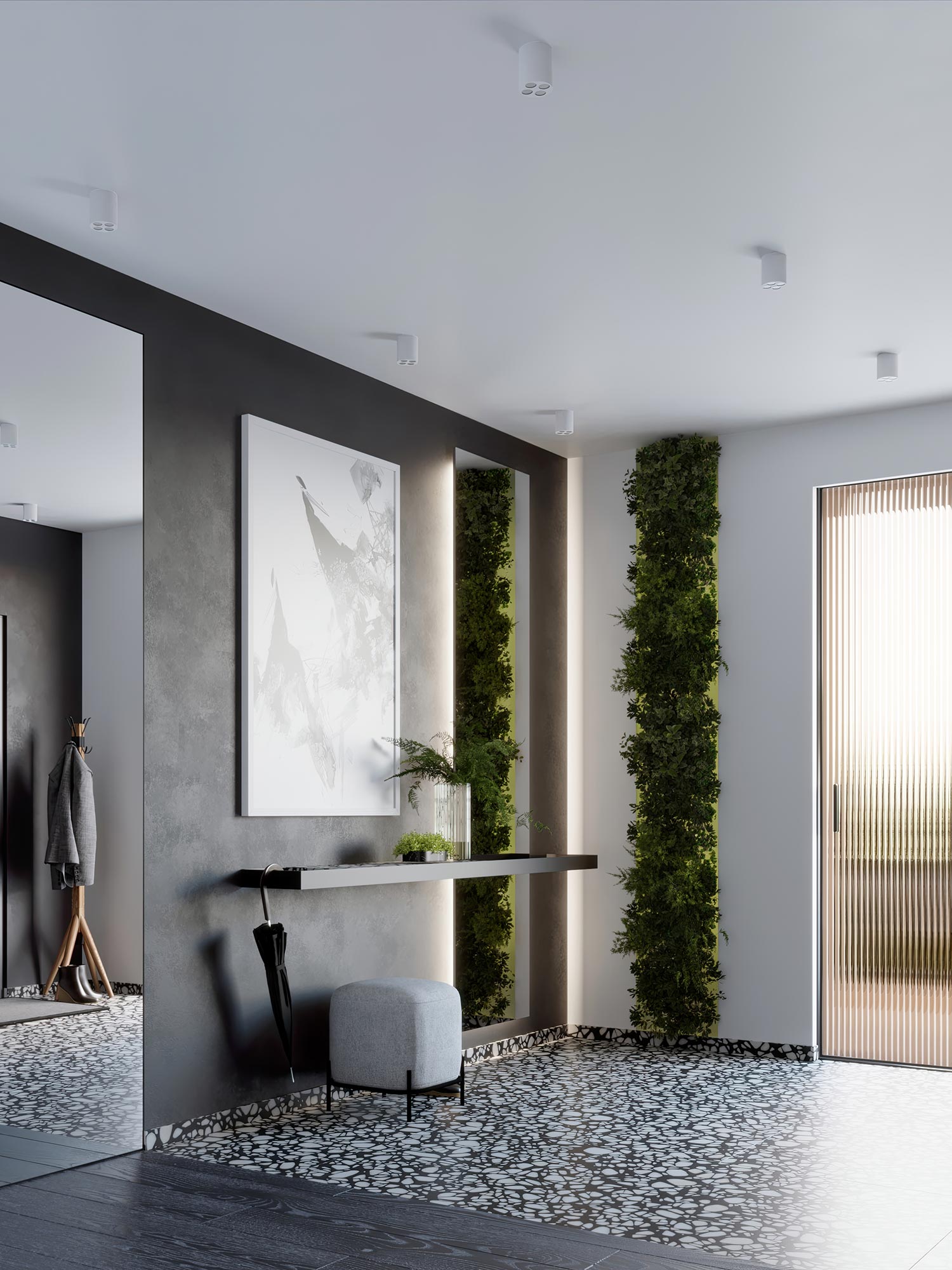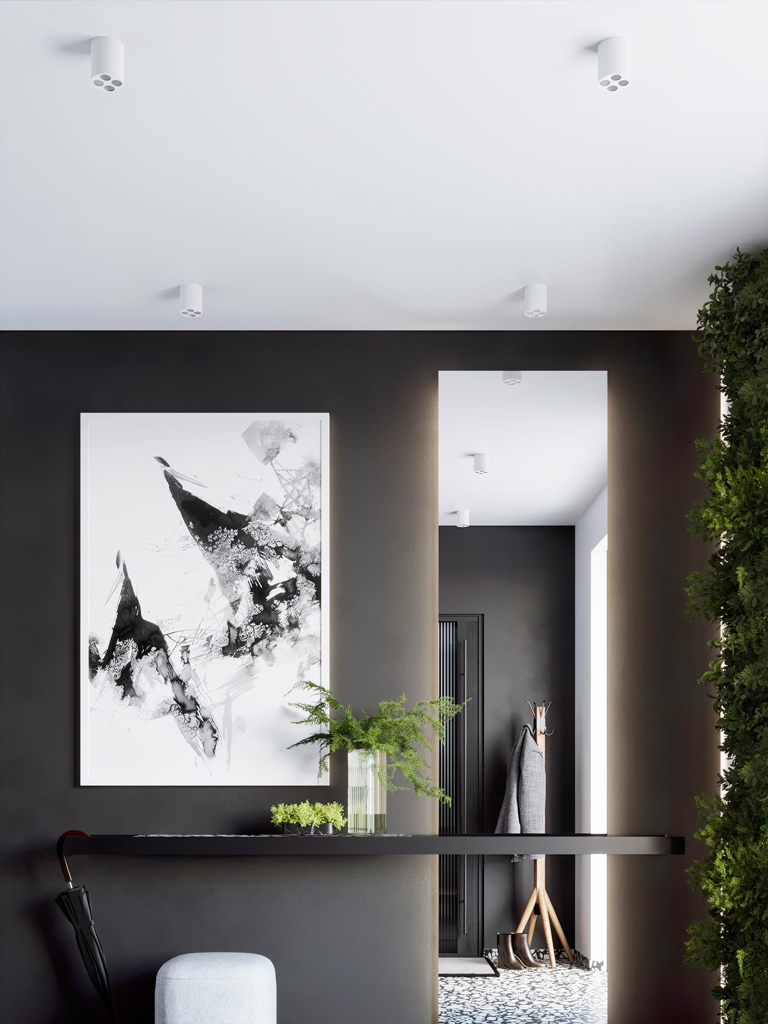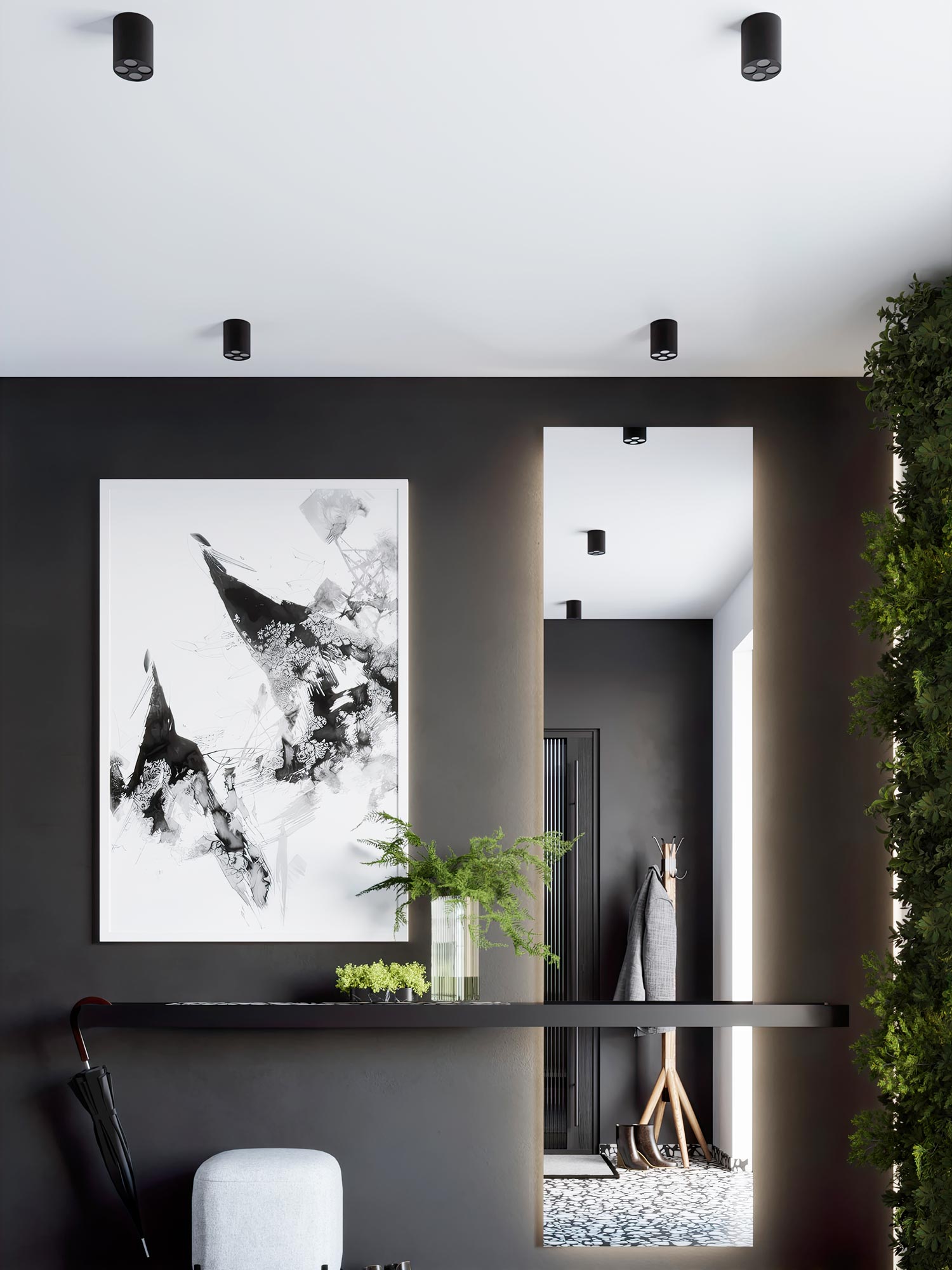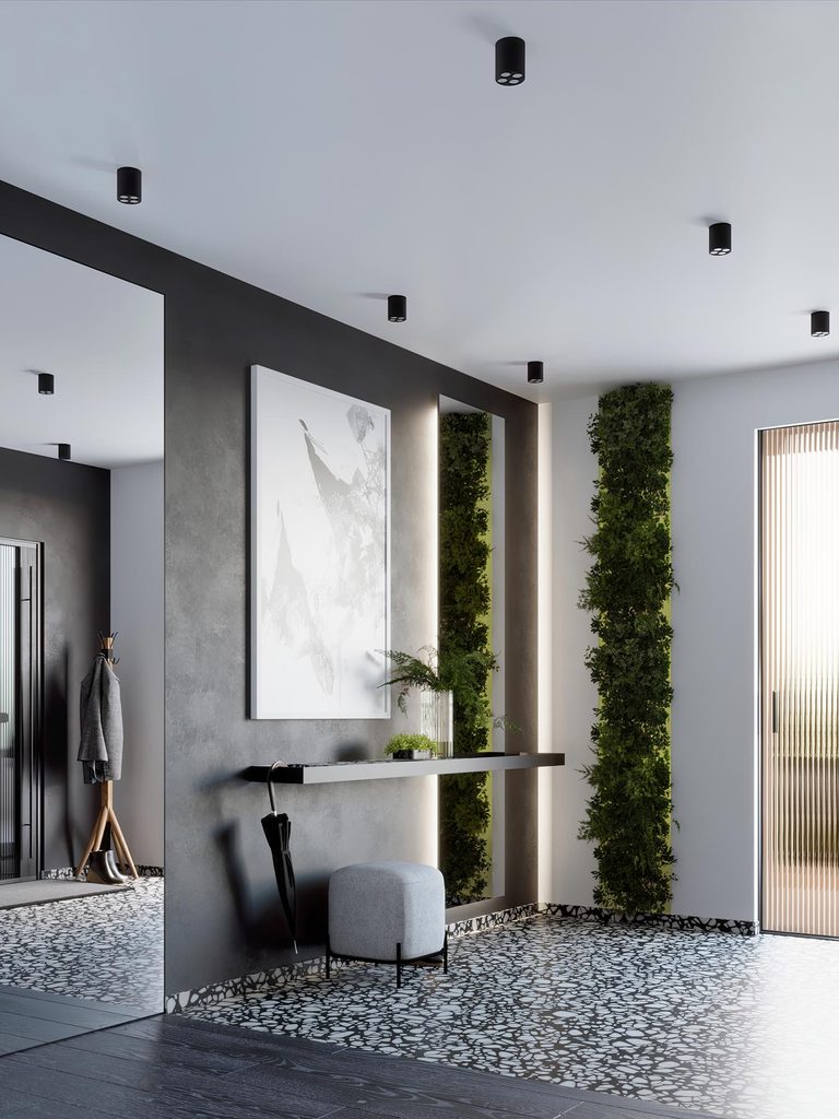 Aranżacja przedpokoju z czarnymi oprawami LED sufitowymi