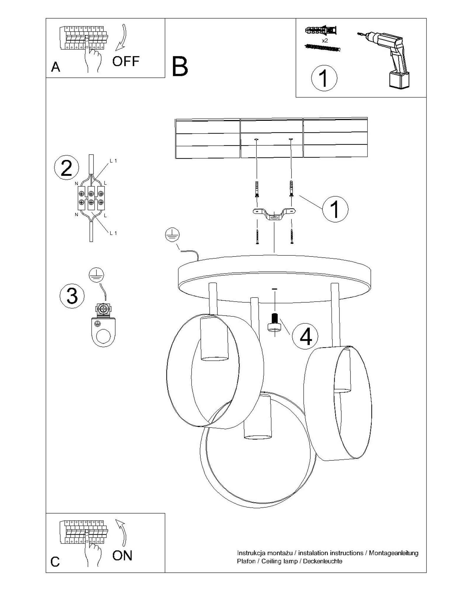 - Ilość żarówek: 3 (żarówki nie są dołączone do zestawu)