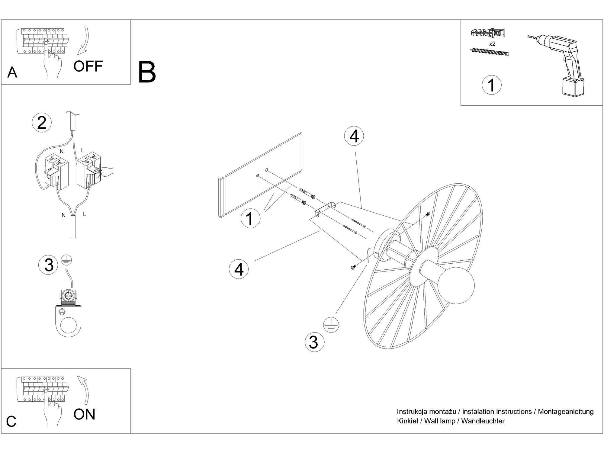 Zasilanie kinkietu/plafonu SUD wynosi 50-60Hz, ~220-230V, a gniazdo żarówki to E27. Może wspierać tradycyjne żarówki o mocy do 60W oraz nowoczesne żarówki LED o mocy do 15W. Produkt ma klasę ochronności IP20. Należy zwrócić uwagę, że źródło światła nie jest dołączone do zestawu.