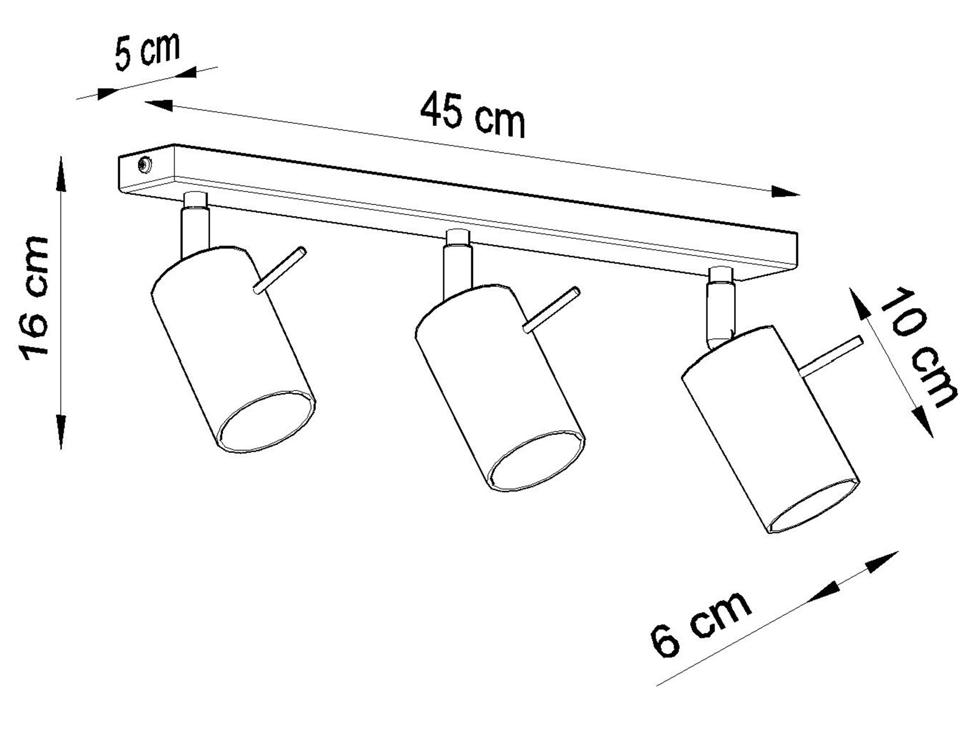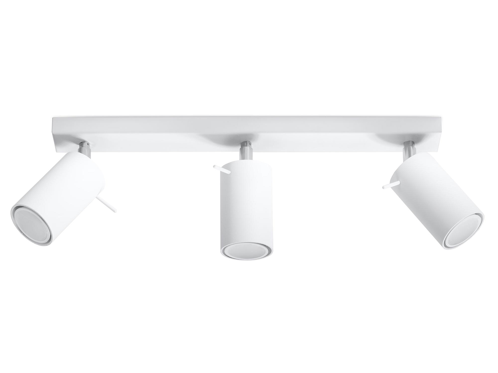 Nowoczesny plafon industrialny z trzema reflektorami na białym tle
