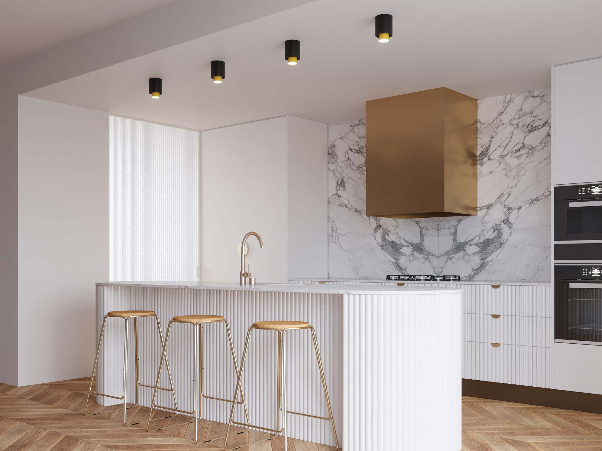 Złoto-Czarna Dekoracja Wnętrza NABIA to zaskakujące połączenie regularnej formy z intensywnym kolorem. Prosty kształt walca ożywia złota barwa mniejszego klosza, tworząc efektowny kontrast i dodając charakteru każdej przestrzeni. NABIA to nie tylko praktyczne źródło światła, ale także modny element dekoracyjny, który dopełni wnętrza w każdym stylu.