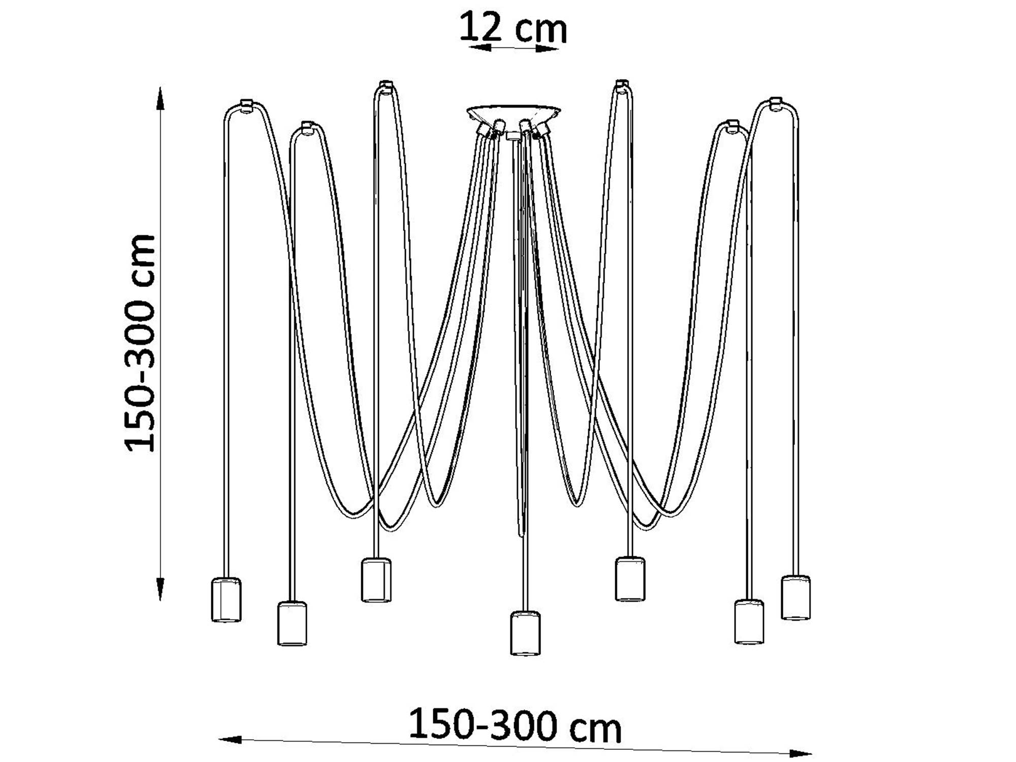 - Wymiary: 300/300/150 cm [max. długość zawiesia 3 m]. Doskonale sprawdzi się zarówno w przestronnych, jak i bardziej kameralnych pomieszczeniach.