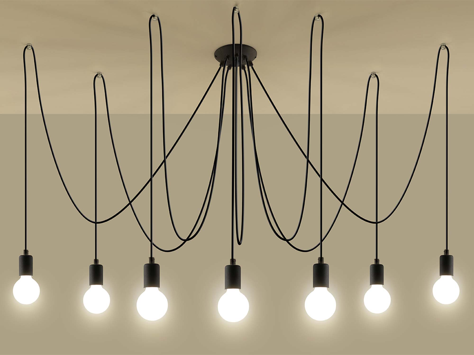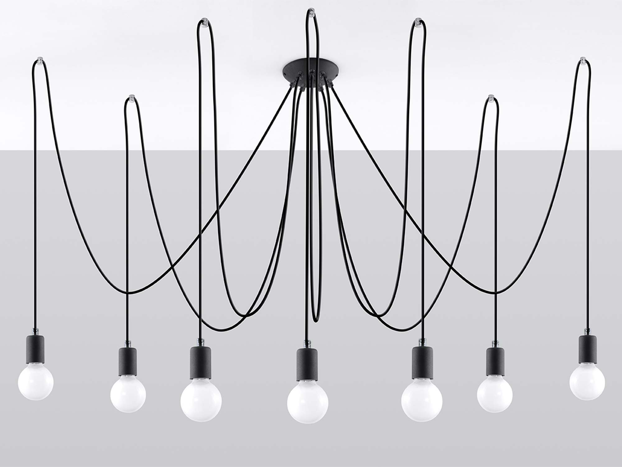 Artystyczny Żyrandol NOLAN 7 Czarny to prawdziwe dzieło sztuki wśród oświetlenia. Jego niepowtarzalny design i ciekawa forma sprawiają, że staje się głównym punktem każdego pomieszczenia. Dzięki dużej liczbie ramion, każdy kąt pomieszczenia zostanie oświetlony, a czarne kable w oplocie dodadzą wnętrzu surowości i industrialnego charakteru.
