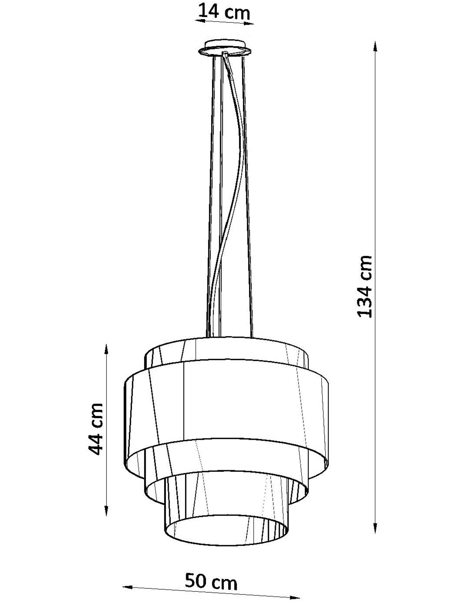 - Wymiary: 50 x 50 x 134 cm, a klosz ma 50 x 44 cm. Te duże wymiary sprawiają, że żyrandol RUBY 50 doskonale komponuje się w dużych pomieszczeniach.