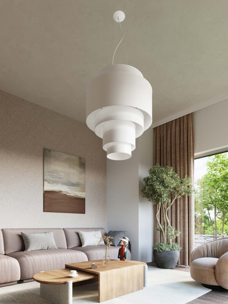 - Kolor: Biały kolor nadaje żyrandolowi uniwersalności i sprawia, że pasuje do różnych stylów wnętrz.