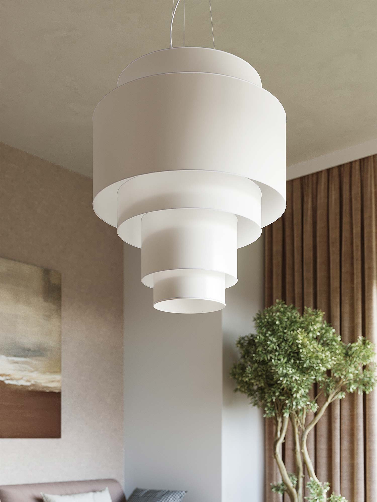 RUBY 50 charakteryzuje się niezwykle interesującym, stopniowym kształtem. Jest to ciekawe uzupełnienie przestrzeni, które jednocześnie może służyć jako główny element aranżacyjny. Duże przestrzenie, takie jak przestronne salony czy szerokie przedpokoje, są idealnym miejscem dla tego stylowego żyrandolu.