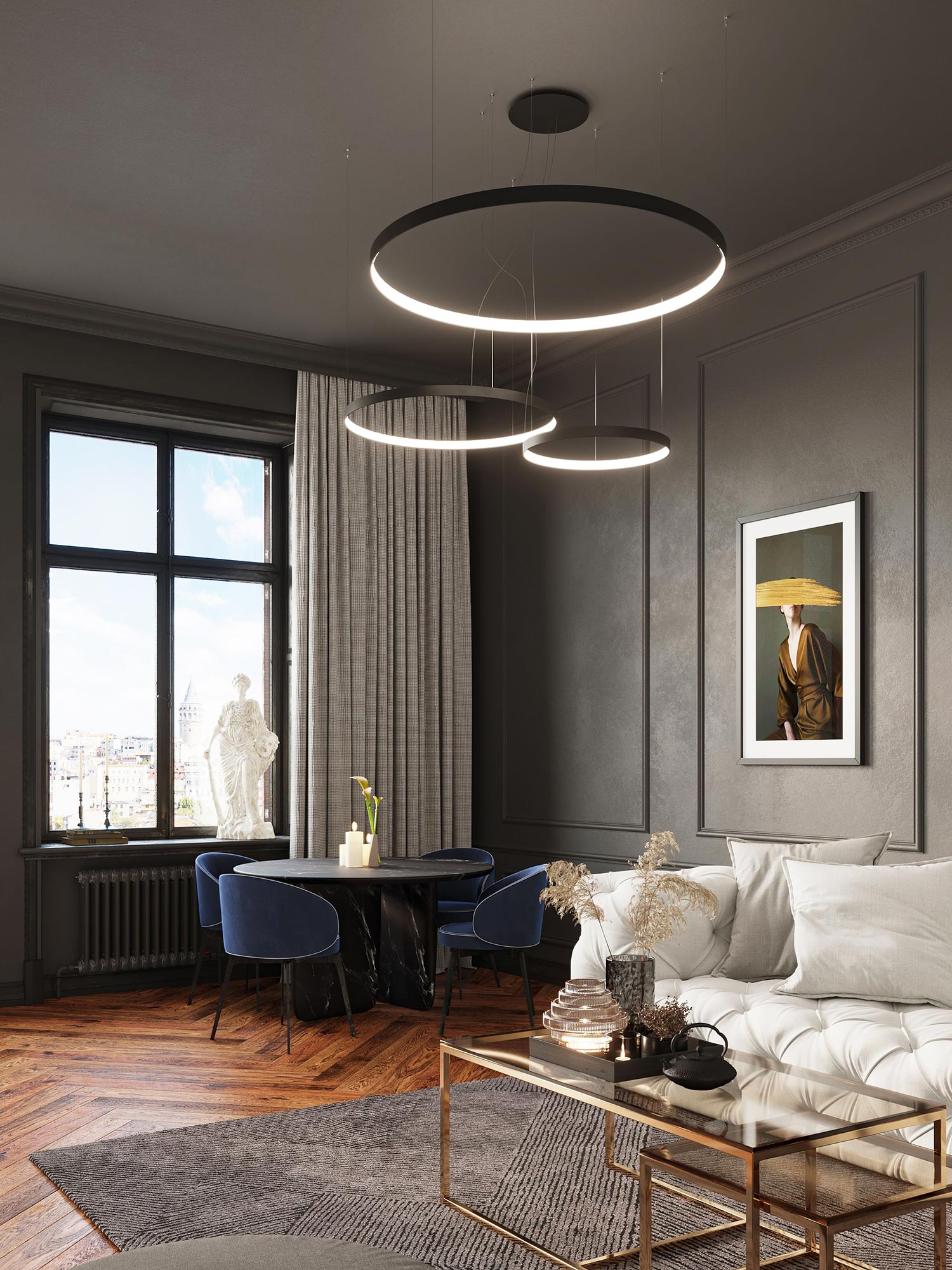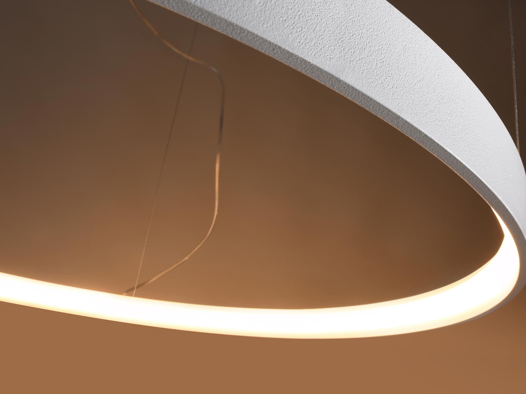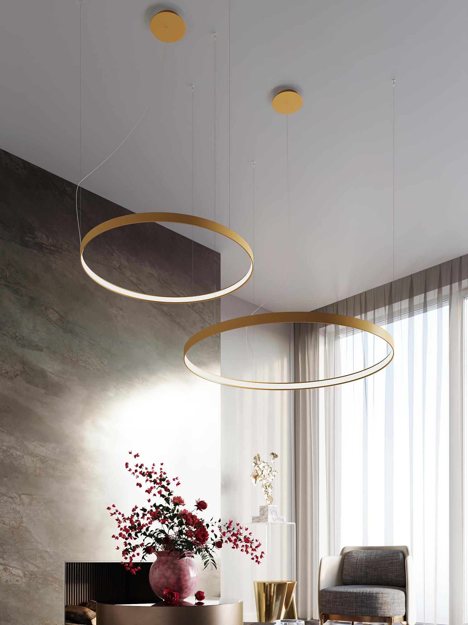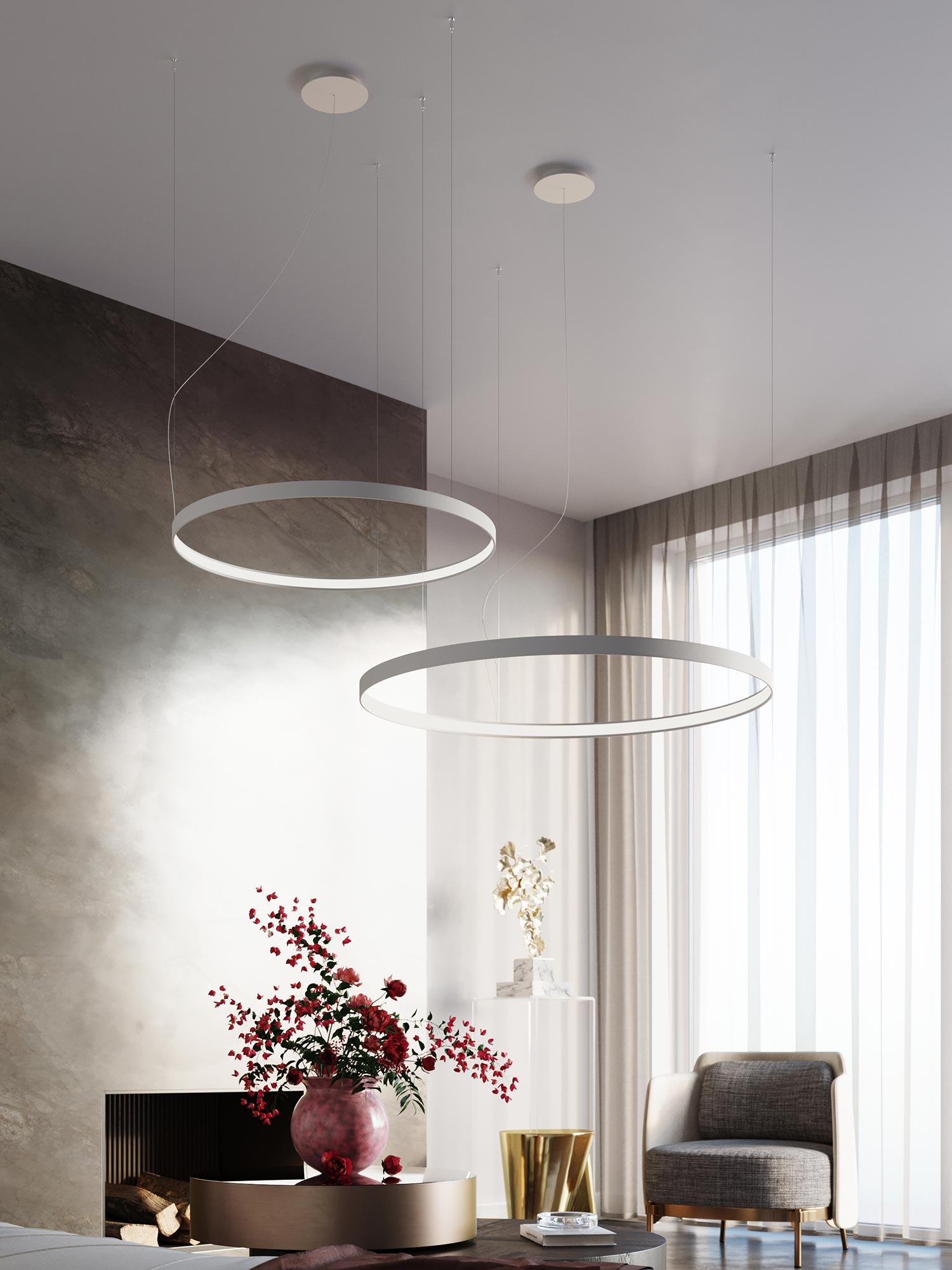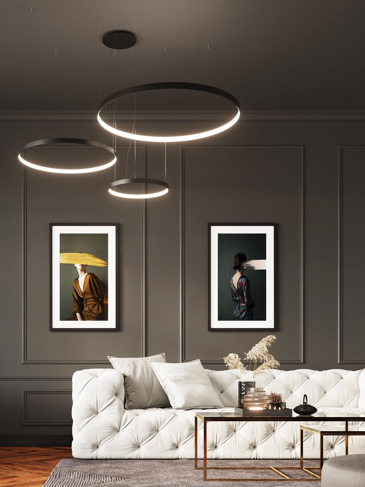 Oprawy RADIX 55, wykonane w formie nowoczesnych okręgów LED, gwarantują wysoką estetykę i znakomite parametry świecenia. Dzięki zastosowaniu technologii LED, żyrandol dostarcza optymalne warunki oświetleniowe, jednocześnie oferując efektywność energetyczną.