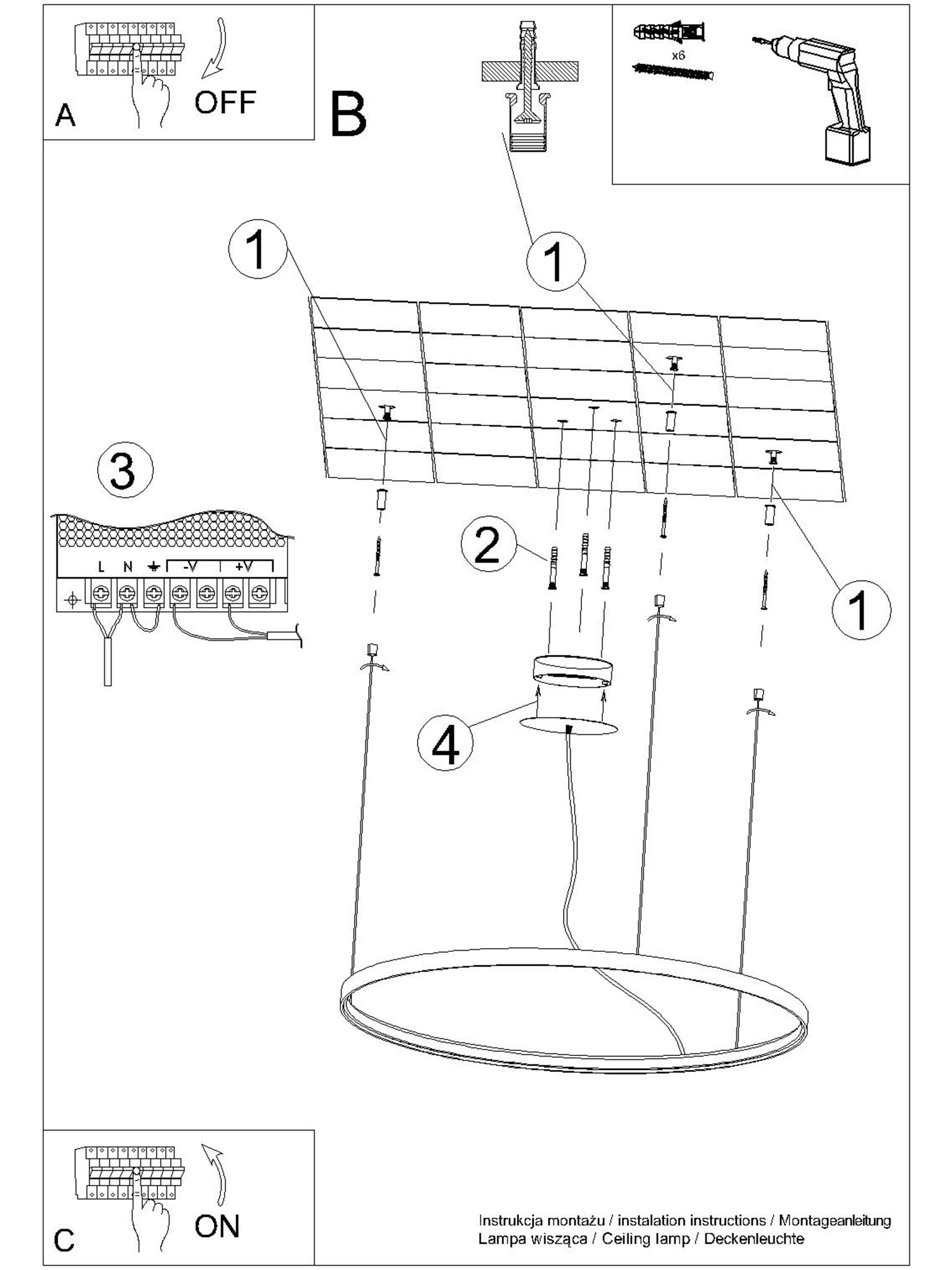 - Źródło światła: LED, 30W, 3870lm, 3000K/4000K, CRI90, 50-60Hz, ~220-230V, IP20, klasa ochronności I. Źródło światła jest dołączone do zestawu.
