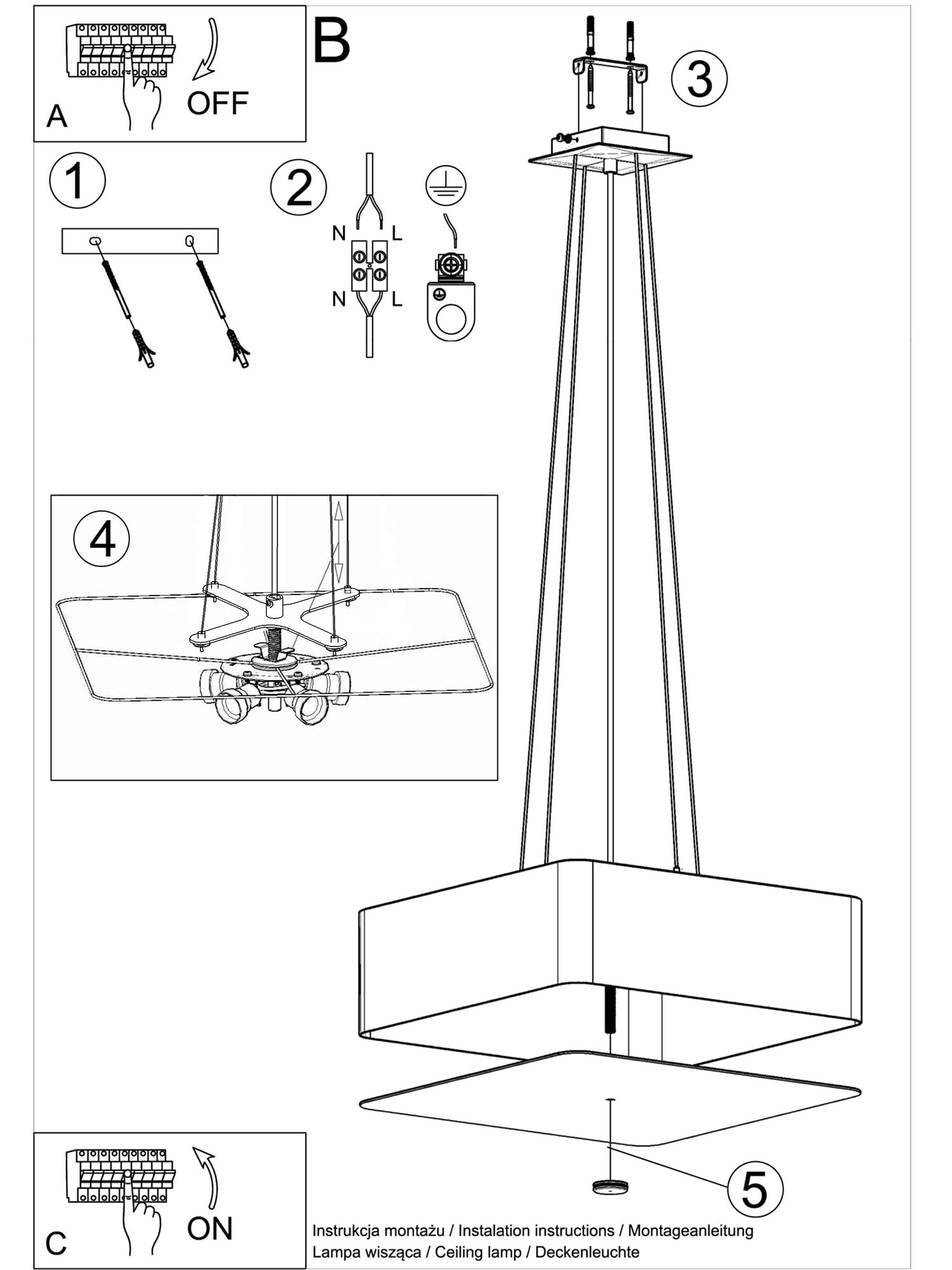 - Waga brutto: 4 kg. Odpowiednia waga sprawia, że montaż żyrandola jest bezproblemowy.