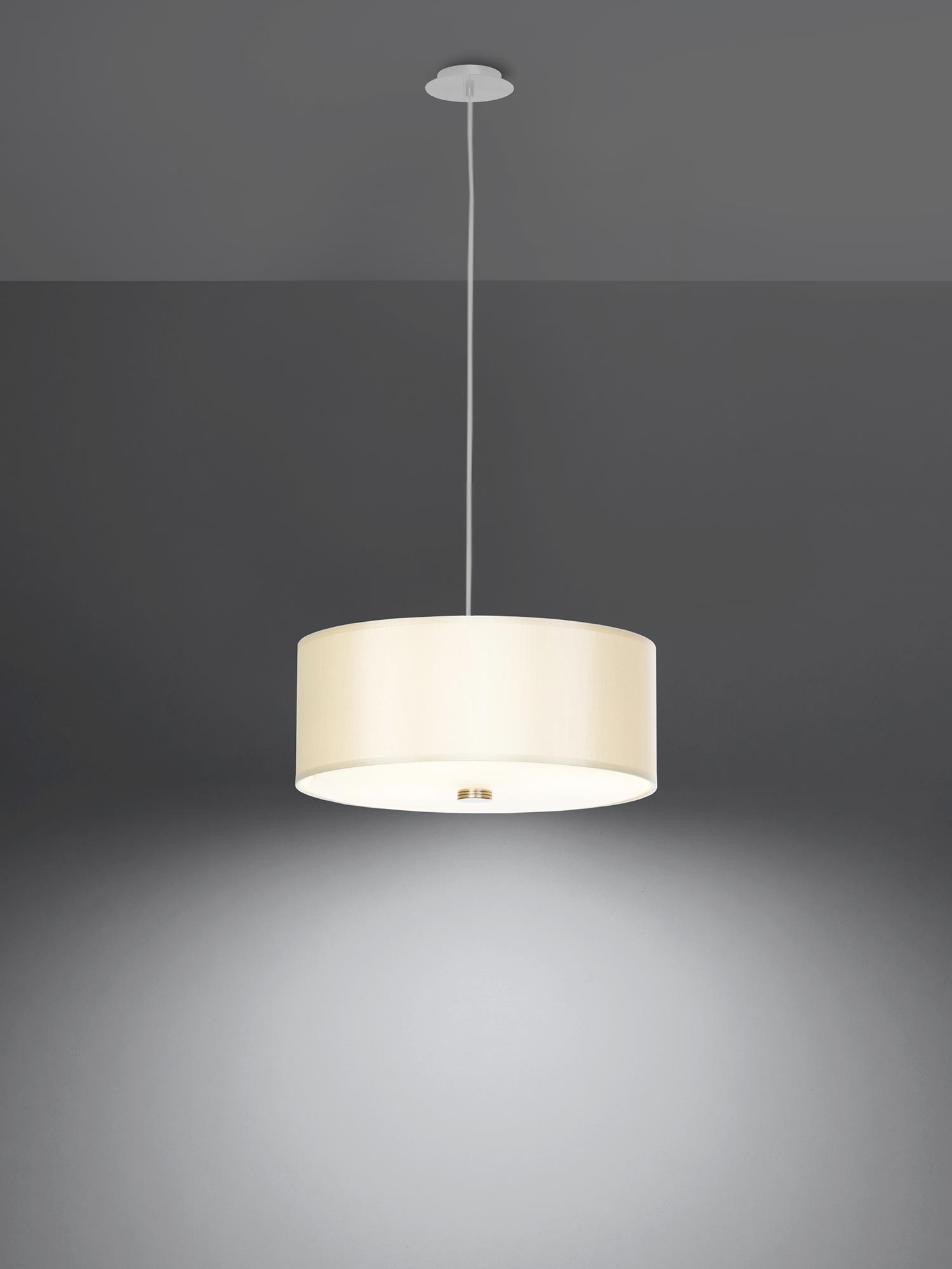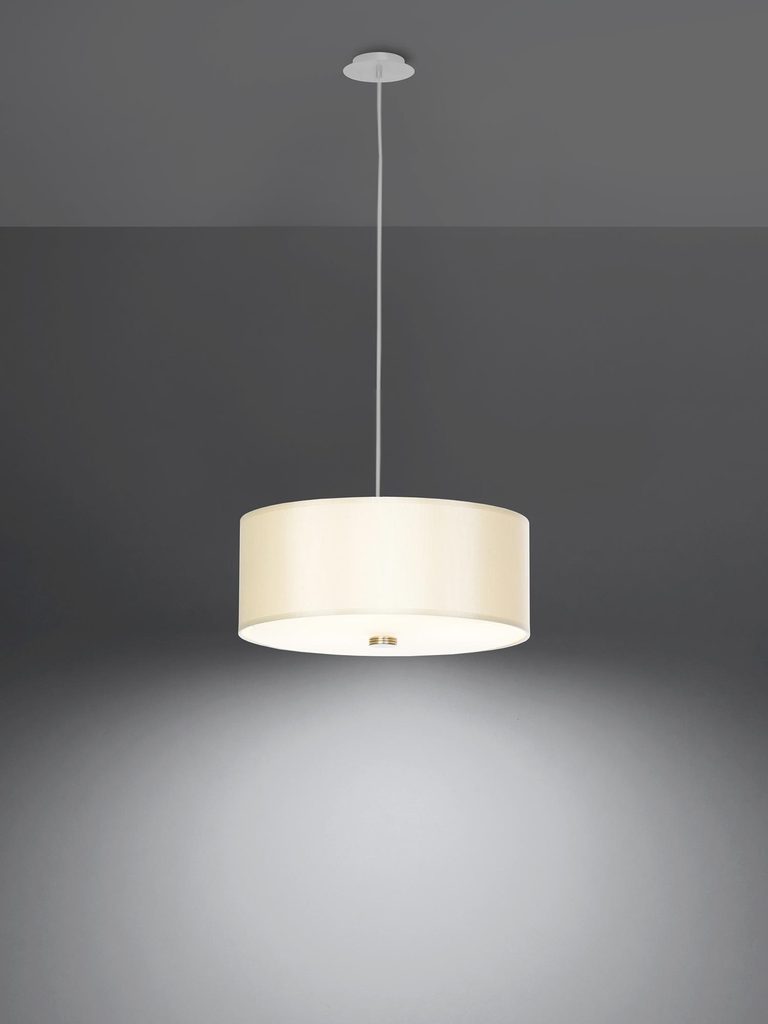 - Materiał: Połączenie tkaniny, szkła i stali gwarantuje trwałość i estetykę. To sprawia, że żyrandol SKY 30 jest solidny i odporny na zniszczenia.