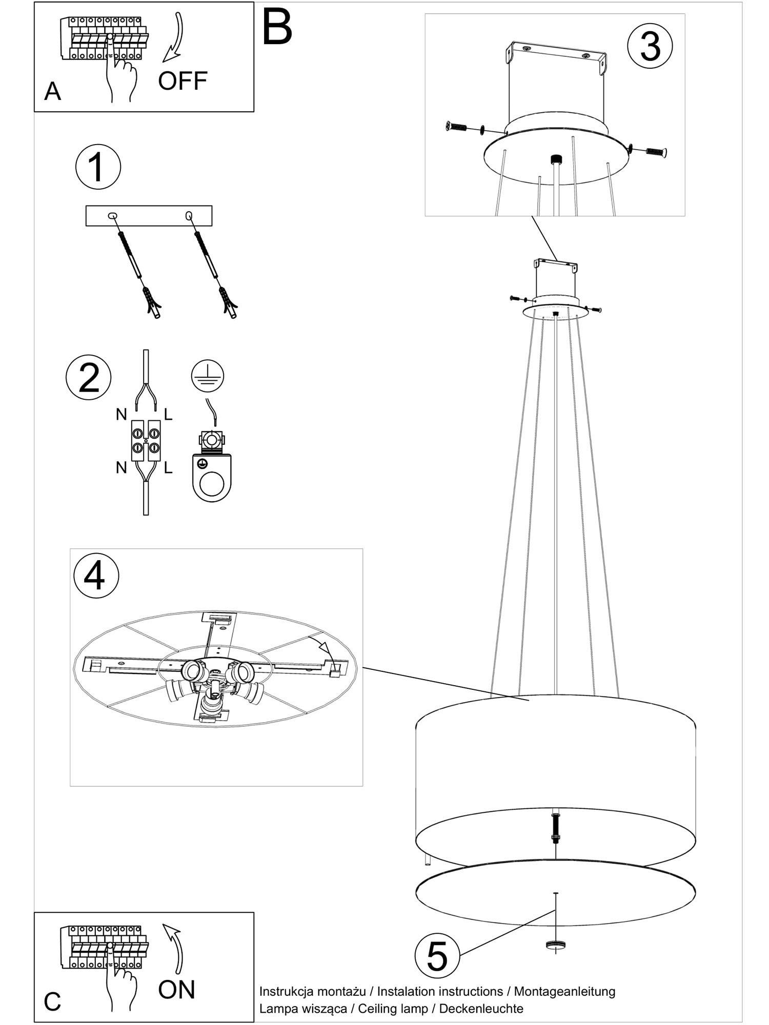 - Źródło światła: E27, 5x60W, 5x15W LED, 50-60Hz, ~220-230V, IP20, klasa ochronności I. Źródło światła nie jest dostarczane w komplecie.