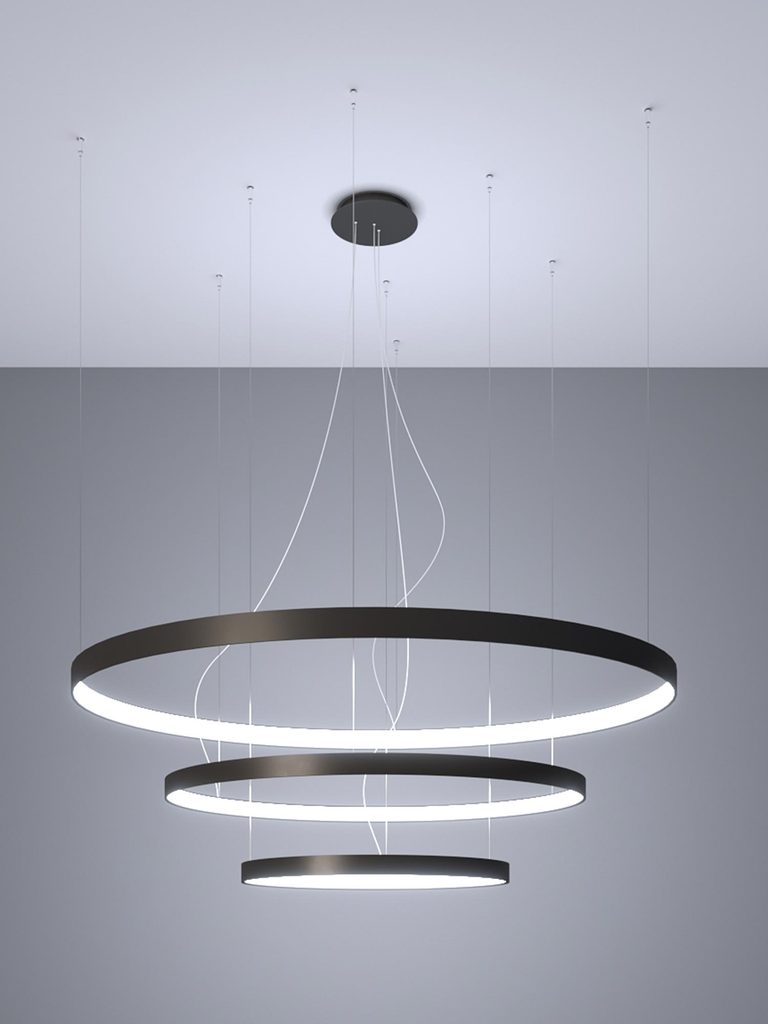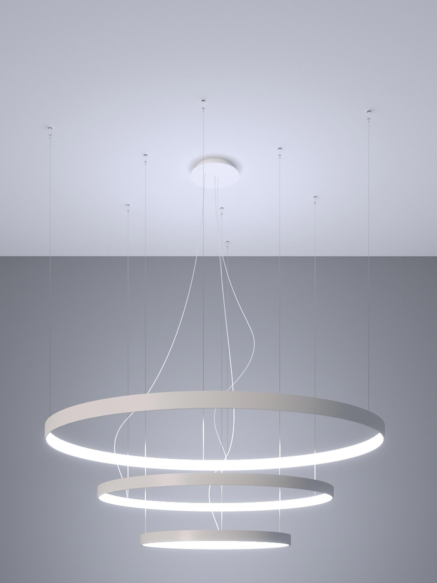 Nowoczesne oprawy w formie okręgów LED to gwarancja wysokiej estetyki i znakomitych parametrów świecenia. Żyrandol RADIX 3 55/78/110 wykorzystuje technologię LED, zapewniając optymalne warunki oświetleniowe przy jednoczesnym zachowaniu niskiego zużycia energii.