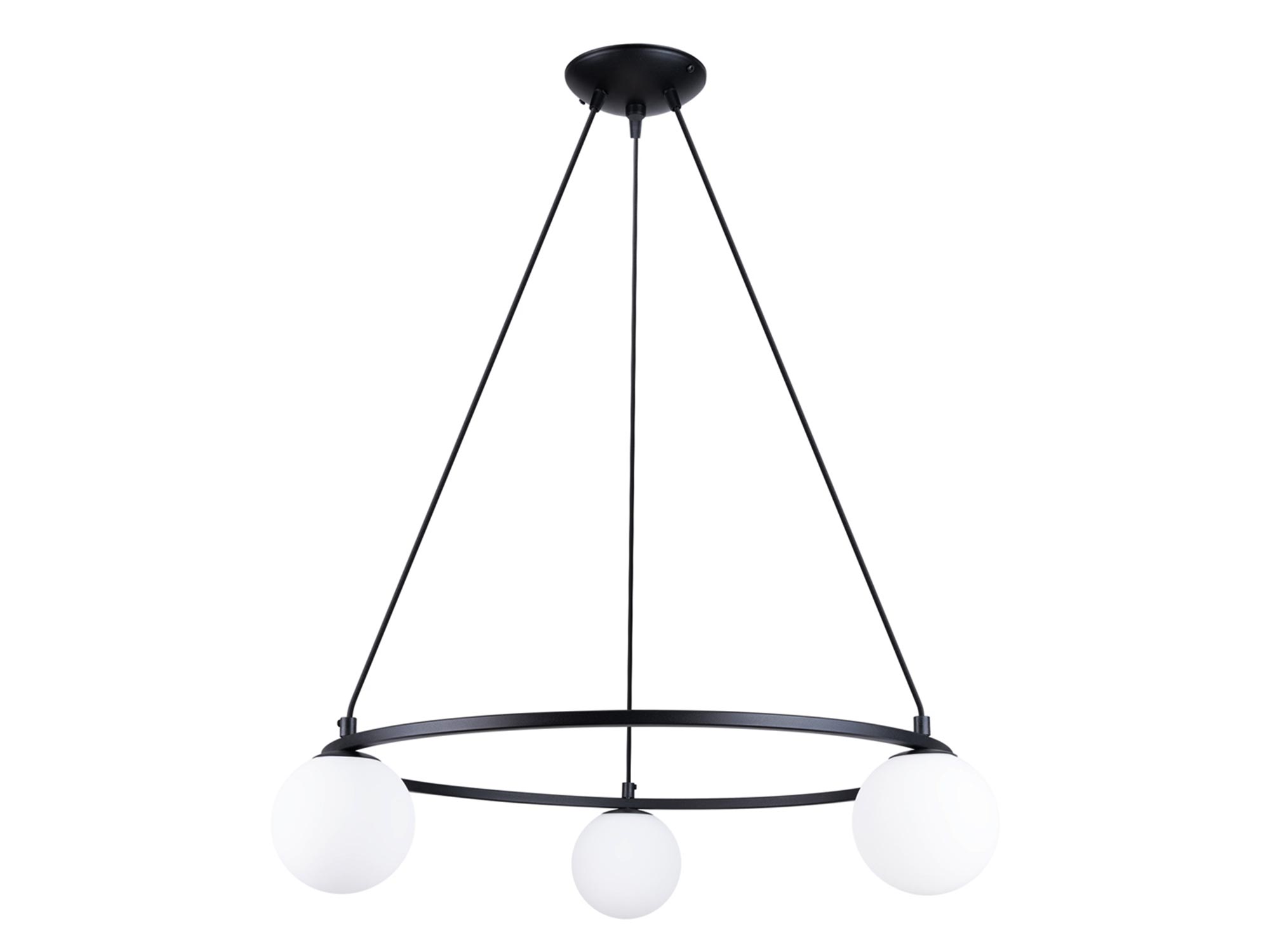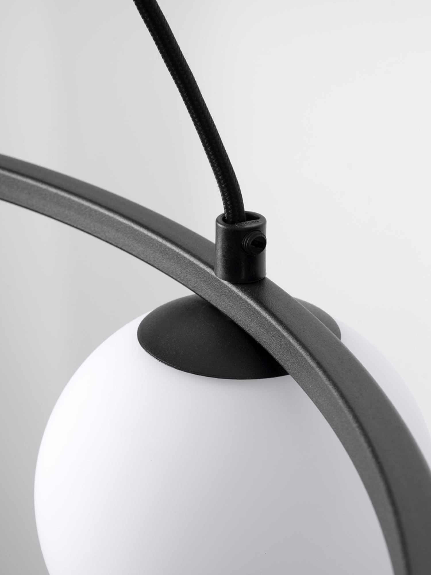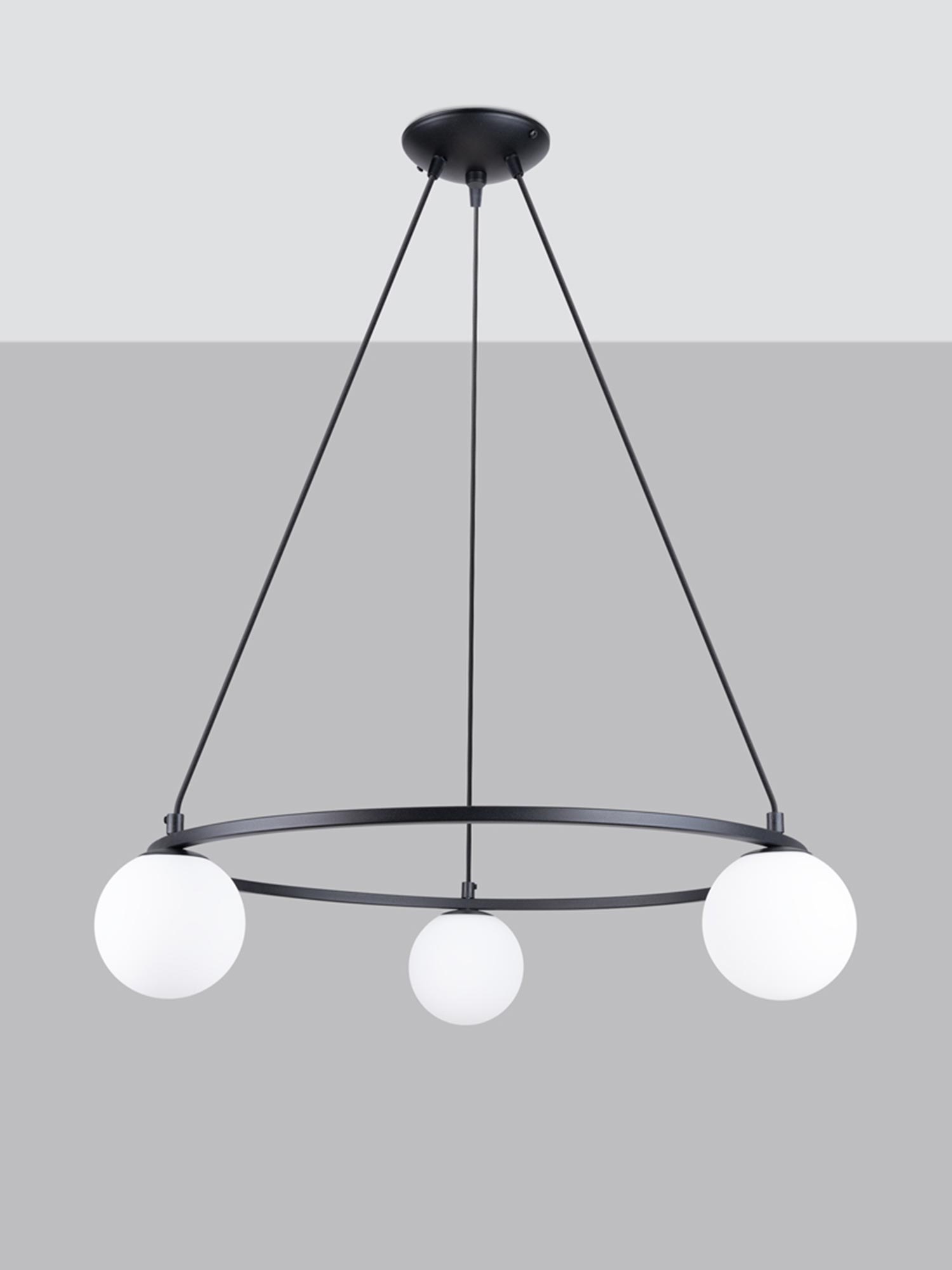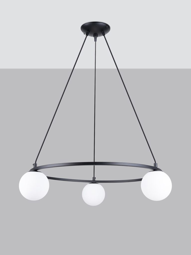 Okrągła lampa z kloszami białymi na czarnym stelażu, styl modern
