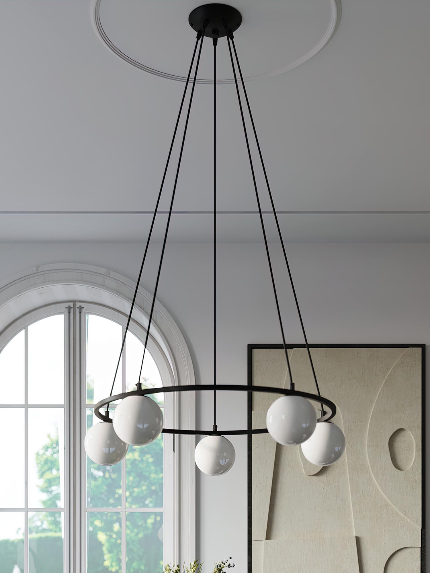 • Wersje kolorystyczne: Dostępność w kolorach czarnym i białym pozwala na doskonałe dopasowanie żyrandola do każdego wnętrza, niezależnie od jego stylu.
