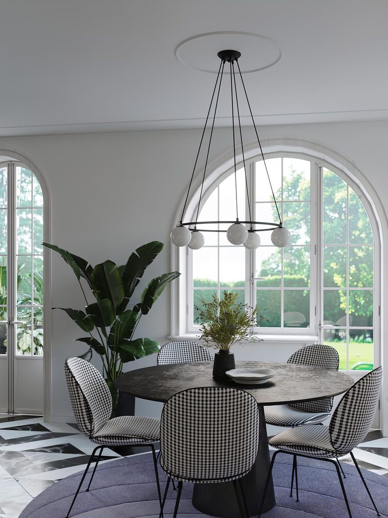 • Styl nowoczesny: Prostota i elegancja żyrandola YOLA podkreślają nowoczesny charakter wnętrz, gdzie liczy się funkcjonalność i design.