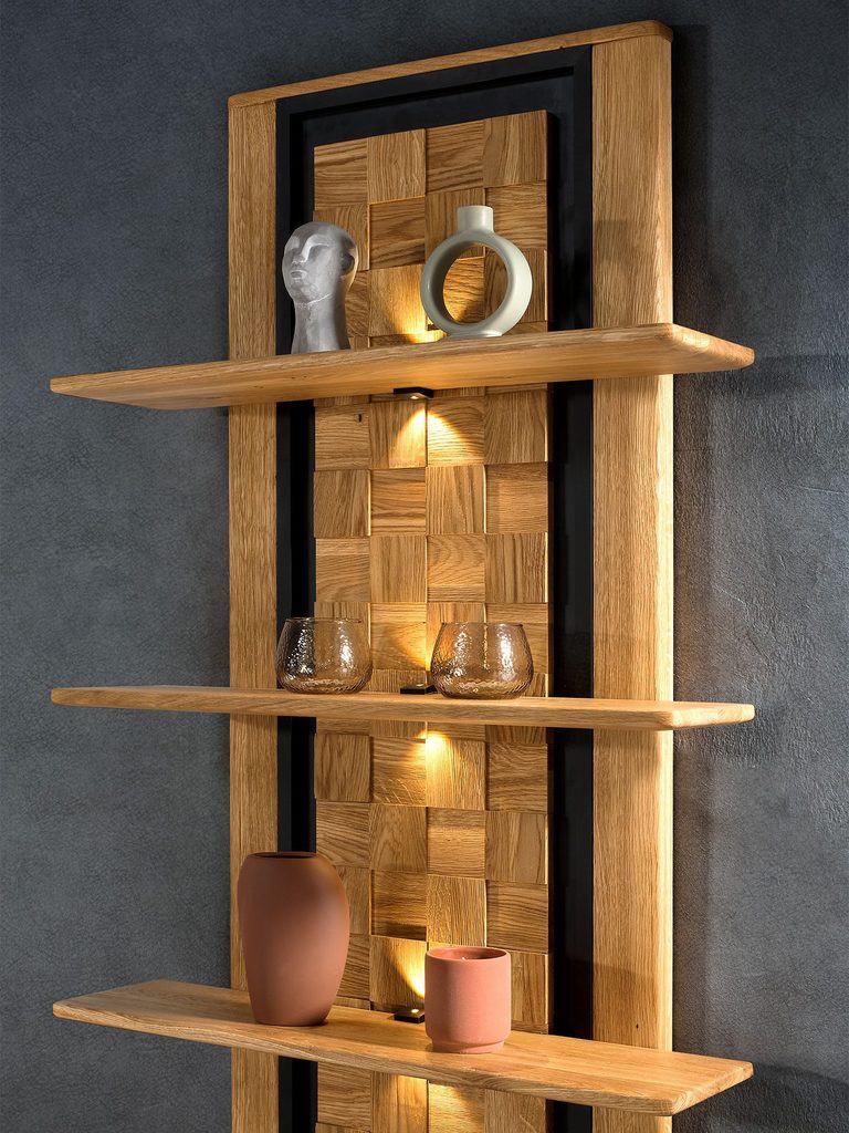 Zestaw półek wiszących z litego drewna i oświetleniem LED