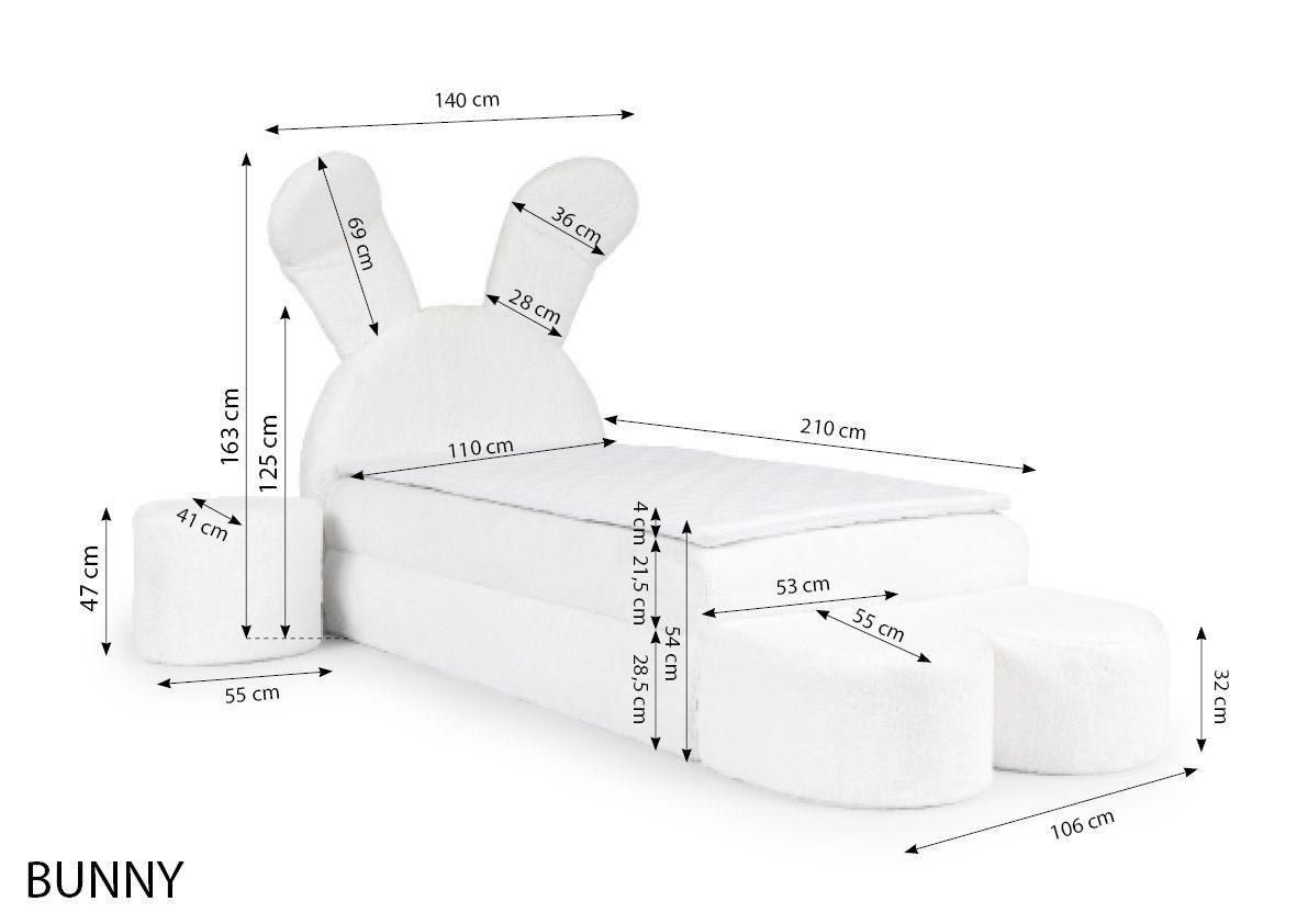 - Materiał: Tapicerowana miękką tkaniną, przyjemną w dotyku.