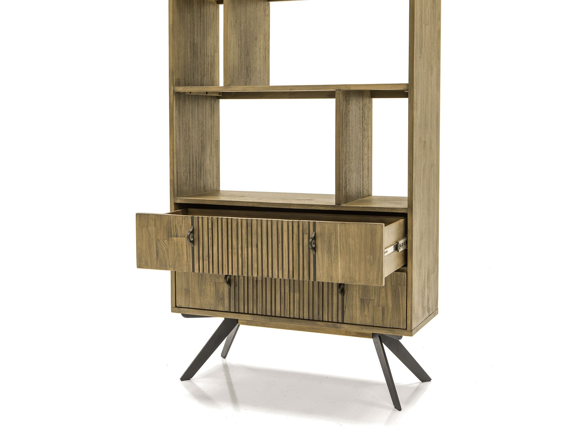 Regał modern vintage z metalowymi nogami i lamelami – Valore