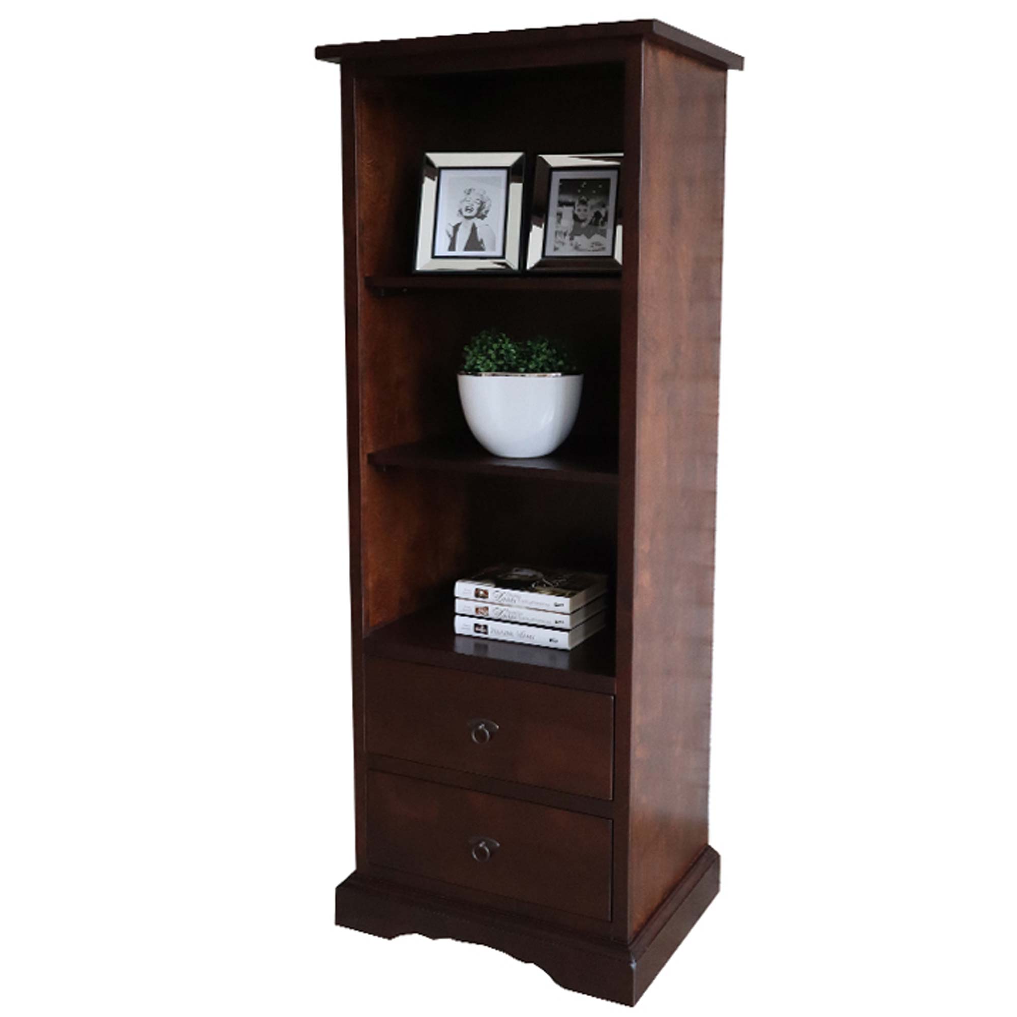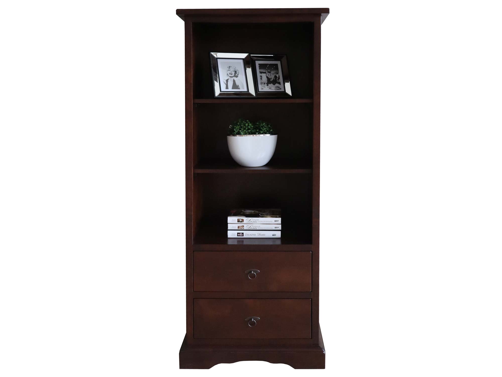 Prezentowany Regał z Drewna LOGAN to mebel, który doskonale sprawdzi się we wnętrzu salonu lub jadalni. Ponadto regał posiada 3 półki na, których można pomieścić wiele książek czy też dekoracji lub pamiątek rodzinnych oraz dwie dolne szuflady gdzie można przechowywać dokumenty czy inne drobne przedmioty. Ponadto estetyczne połącznie drewna z metalowymi uchwytami nadaje szafce wykwintnego stylu. Ten utrzymany w rustykalnym stylu mebel cechuje przede wszystkim solidne wykonanie, a wykorzystane materiały reprezentują najwyższą jakość. Ponadto klasyczny wygląd tego mebla stoi w parze z jego funkcjonalnością. Co więcej wybierając ten mebel można być pewnym, że nie tylko stylowo uzupełni wnętrze salonu, ale także zaskoczy swoją praktycznością.