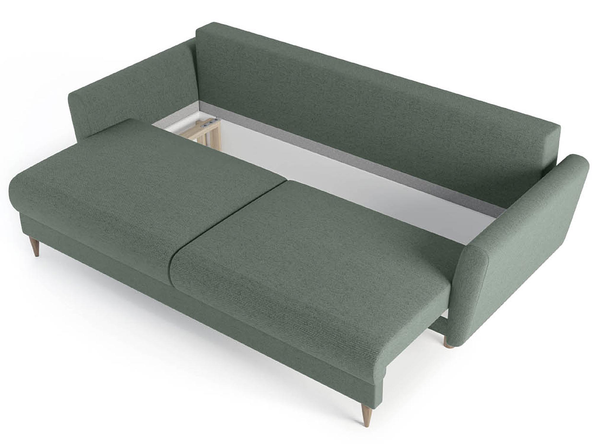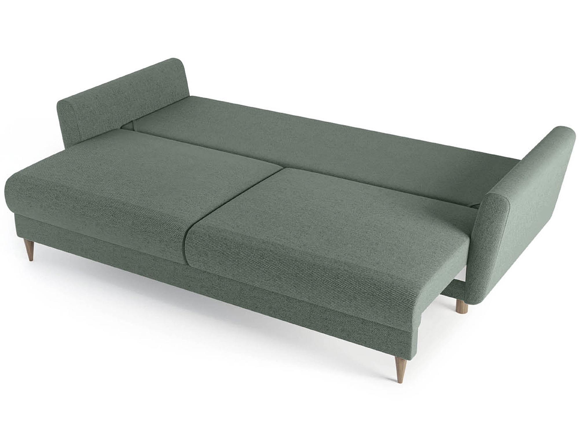 Rozkładana sofa w kolorze zielonym z prostym oparciem