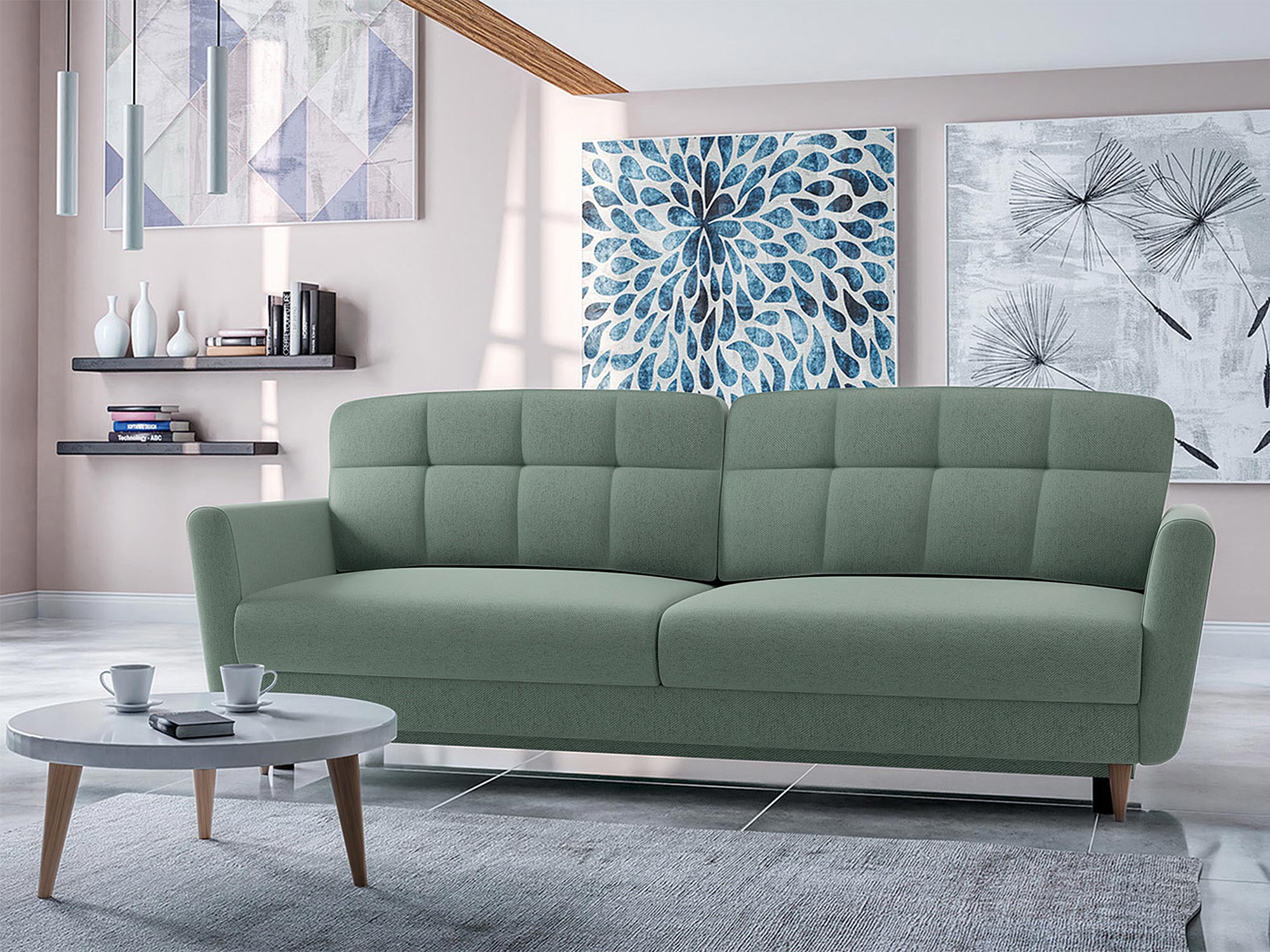 Nowoczesna zielona sofa do jasnych wnętrz