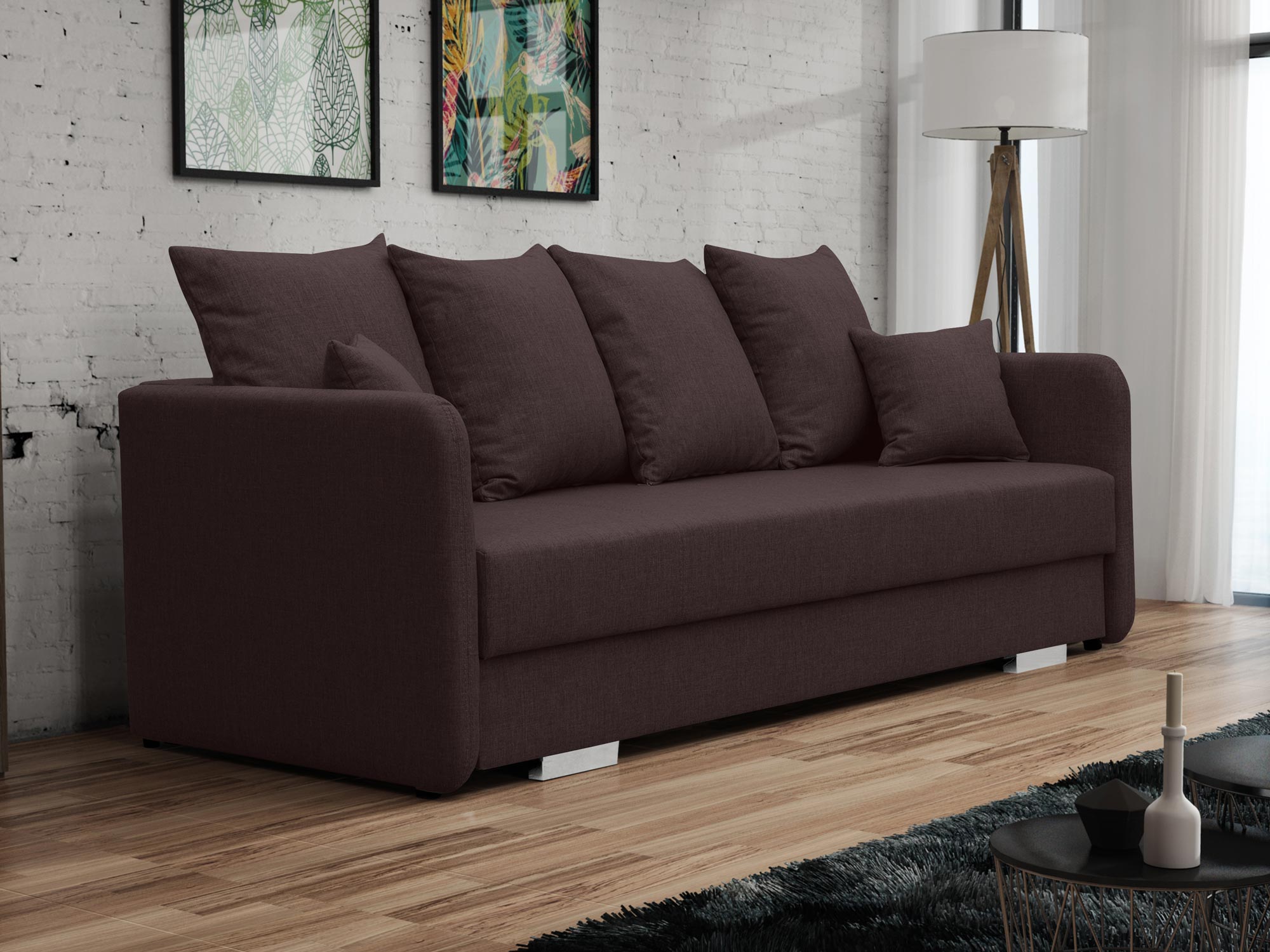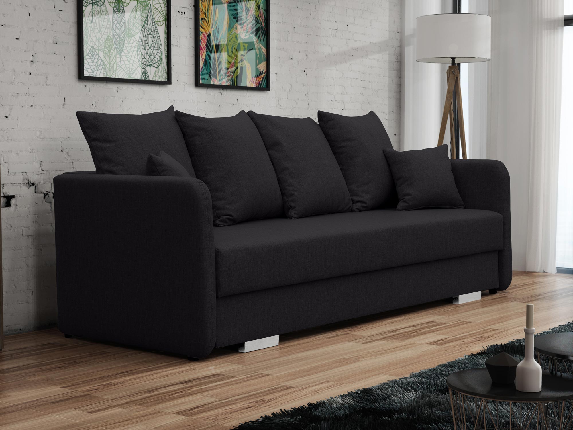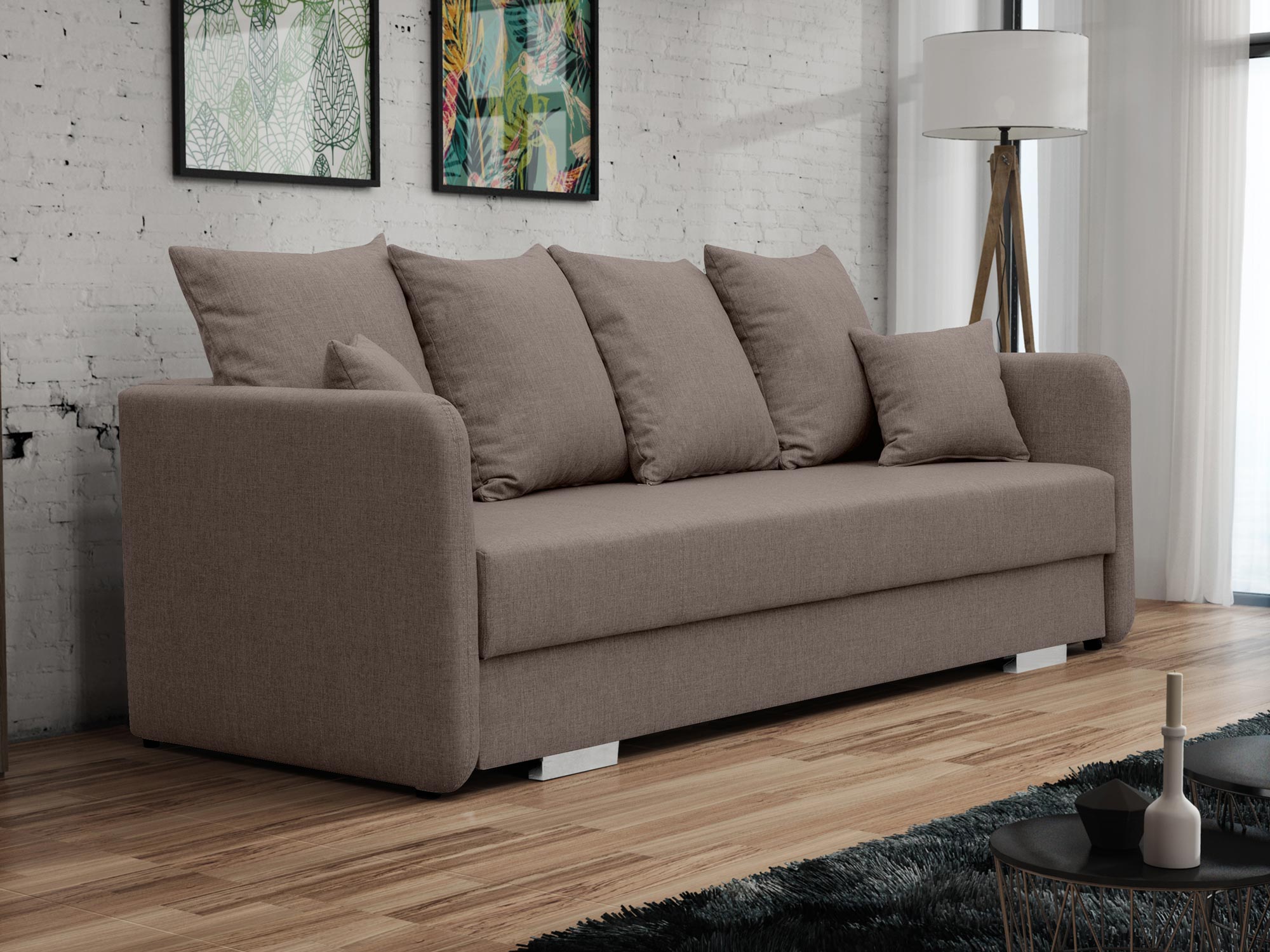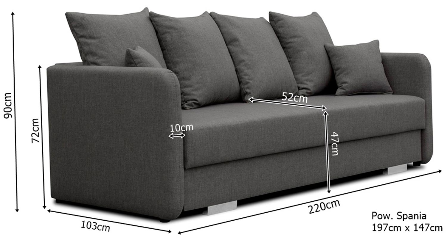 Przede wszystkim sofa dwuosobowa do salonu CAVITO to nowoczesny model z oparciem w postaci miękkich poduszek. Co więcej prezentowany mebel doskonale sprawdzi się we wnętrzu salonu. Ponadto wyposażenie go w nóżki w kolorze chromu sprawia, że prezentuje się niezwykle elegancko. Dodatkowo sofa posiada pojemnik w którym można z powodzeniem można przechowywać pościel, koce czy też poduszki. Model ten posiada również rozkładaną funkcję spania, która pozwala na zamienienie sofy w wygodne łóżko. Zobacz również dostępne w naszej ofercie sofy do salonu.