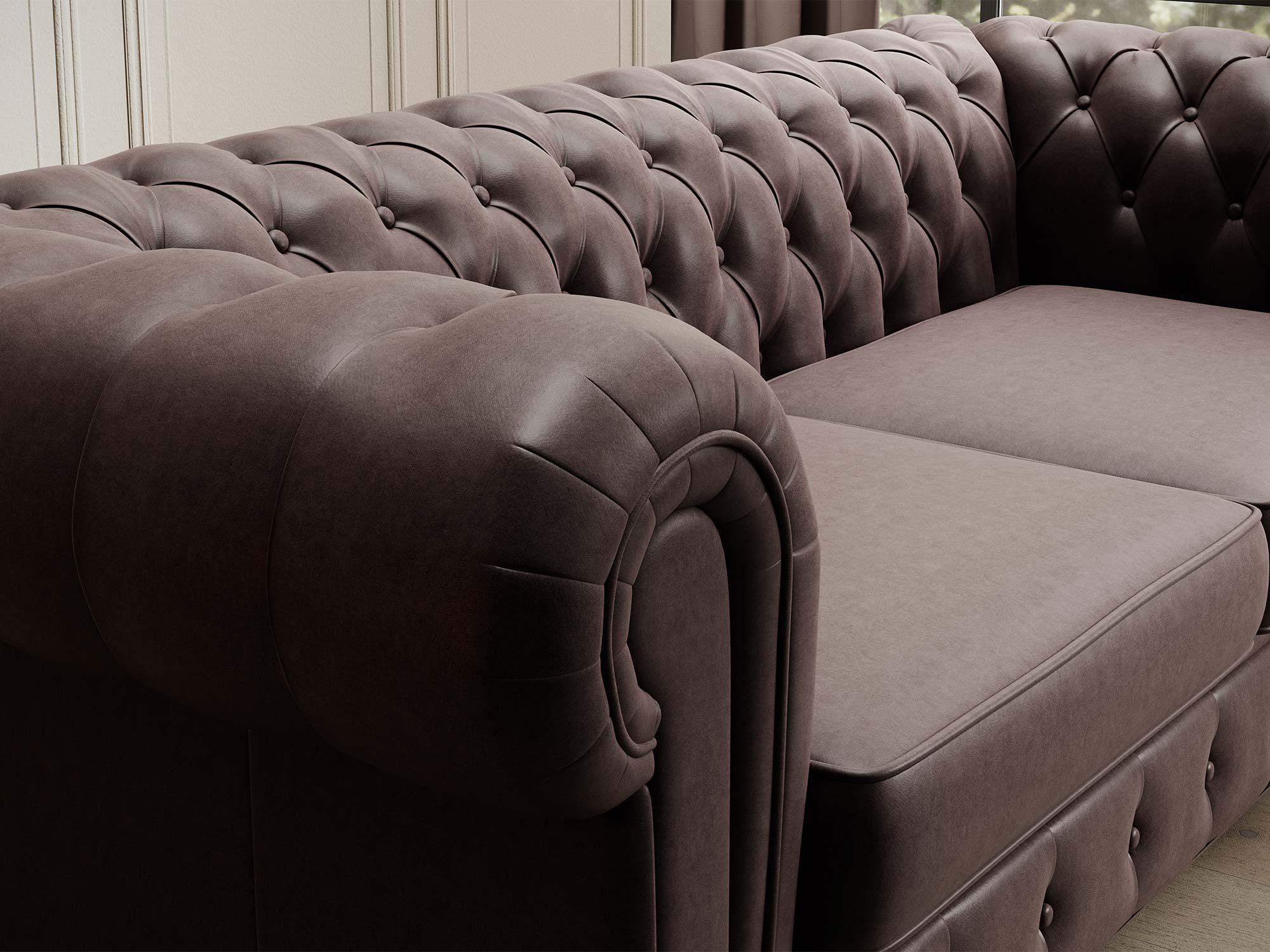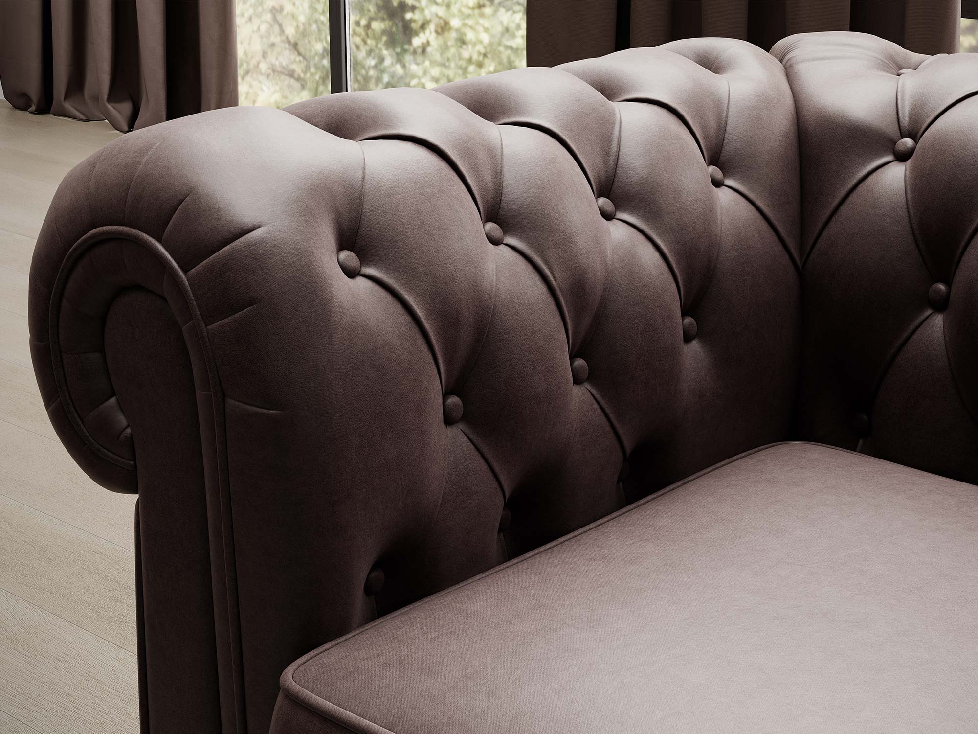 • Ponadczasowy wygląd: głębokie pikowania chester i zawinięte podłokietniki dodają wnętrzu klasy.