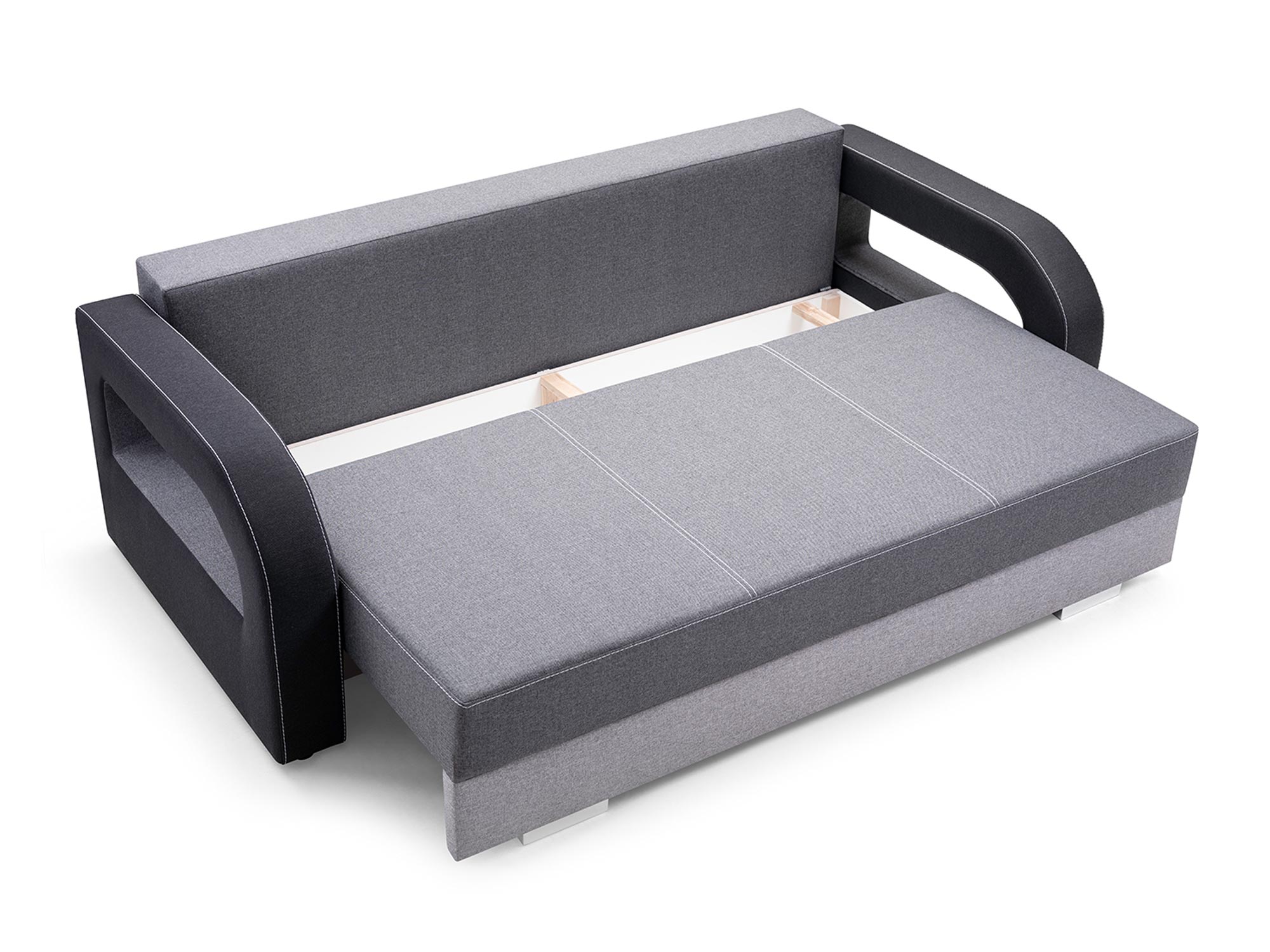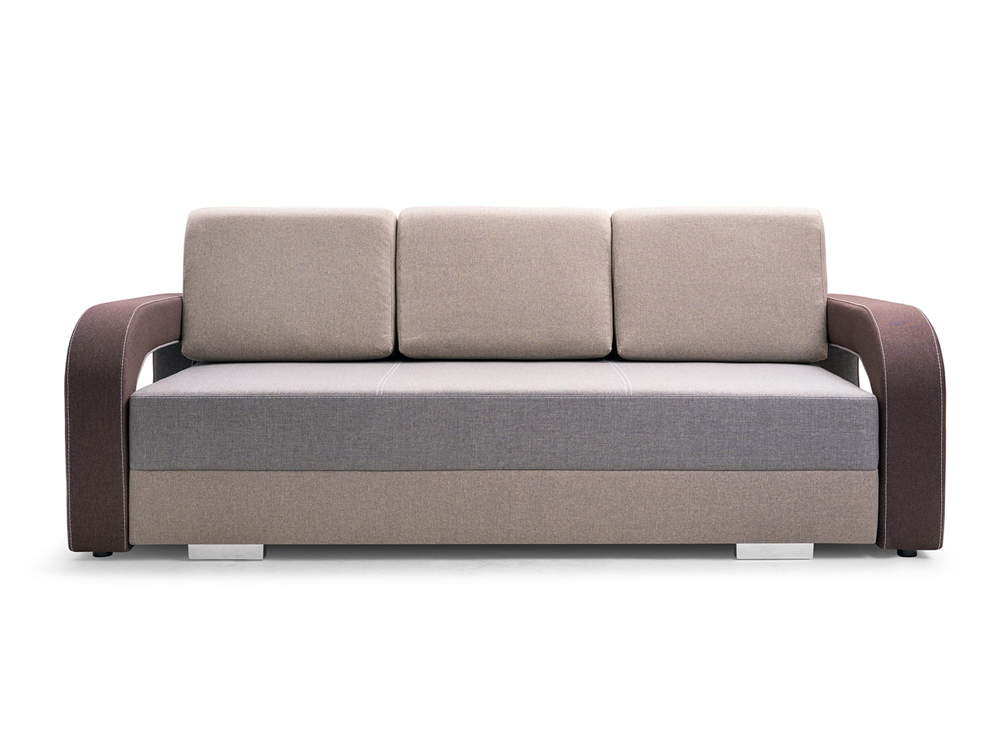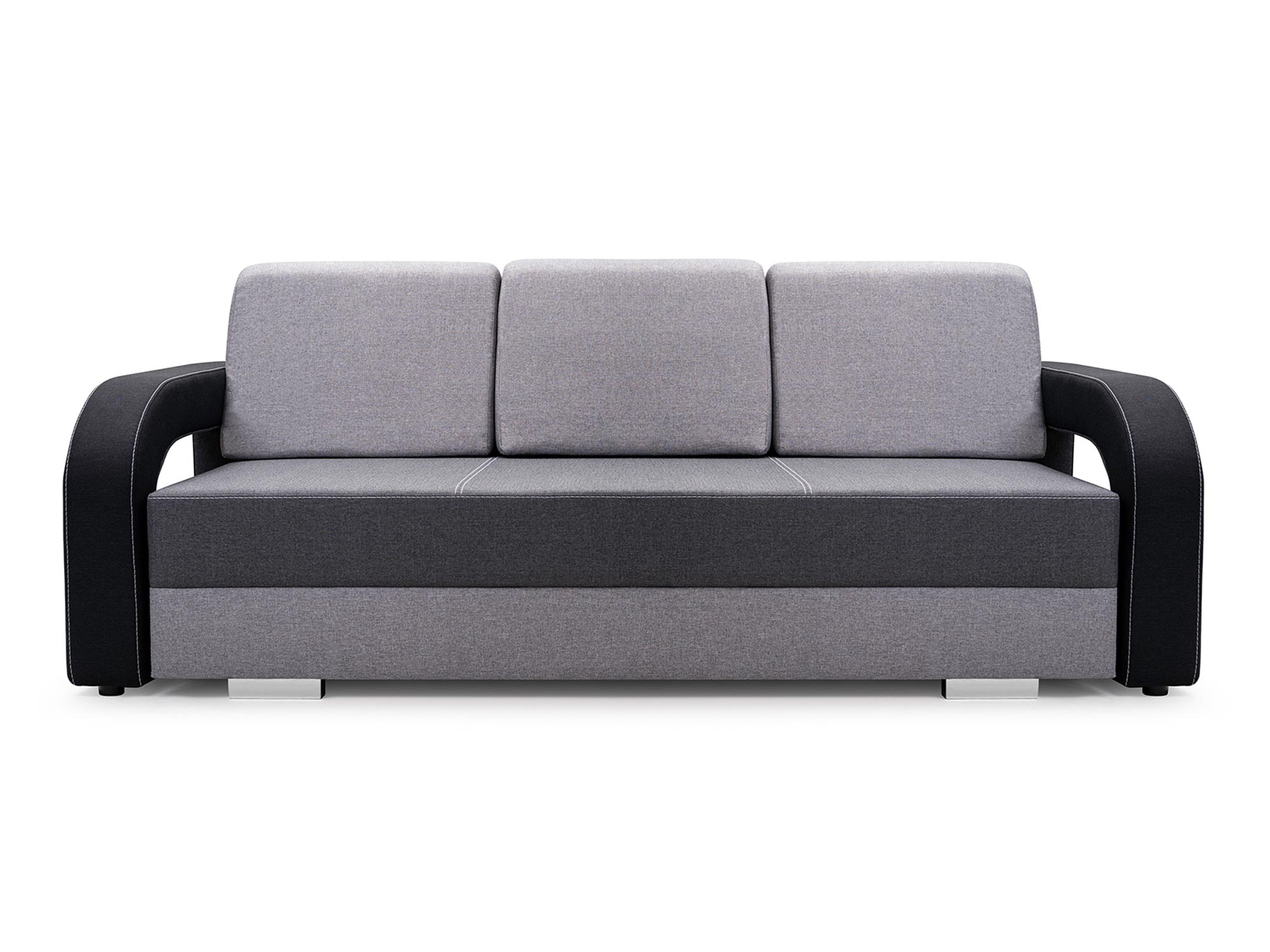 Co najważniejsze sofa rozkładana z pojemnikiem LUCIANO to nowoczesny model, który wyróżniają modernistyczne wycięcia pod podłokietnikami. Ponadto ten stylowy model wyposażono w pakowny pojemnik w którym można przechowywać pościel, poduszki oraz koce. Posiada także specjalny automat wspomagający rozkładanie, dzięki temu rozkładanie jest proste i szybkie. Dodatkowo mebel ten ma w komplecie trzy duże poduchy oparciowe, które zapewniają maksymalny komfort wypoczynku. Co więcej mebel wyposażono w drewniany stelaż, który zapewnia trwałość i solidność konstrukcji. Ponadto mebel ma także nóżki w kolorze chromu, które prezentują się niezwykle nowocześnie, a przy tym dodają stabilności. Zobacz również dostępne w naszej ofercie sofy, które świetnie wkomponują się w każdy wystrój.