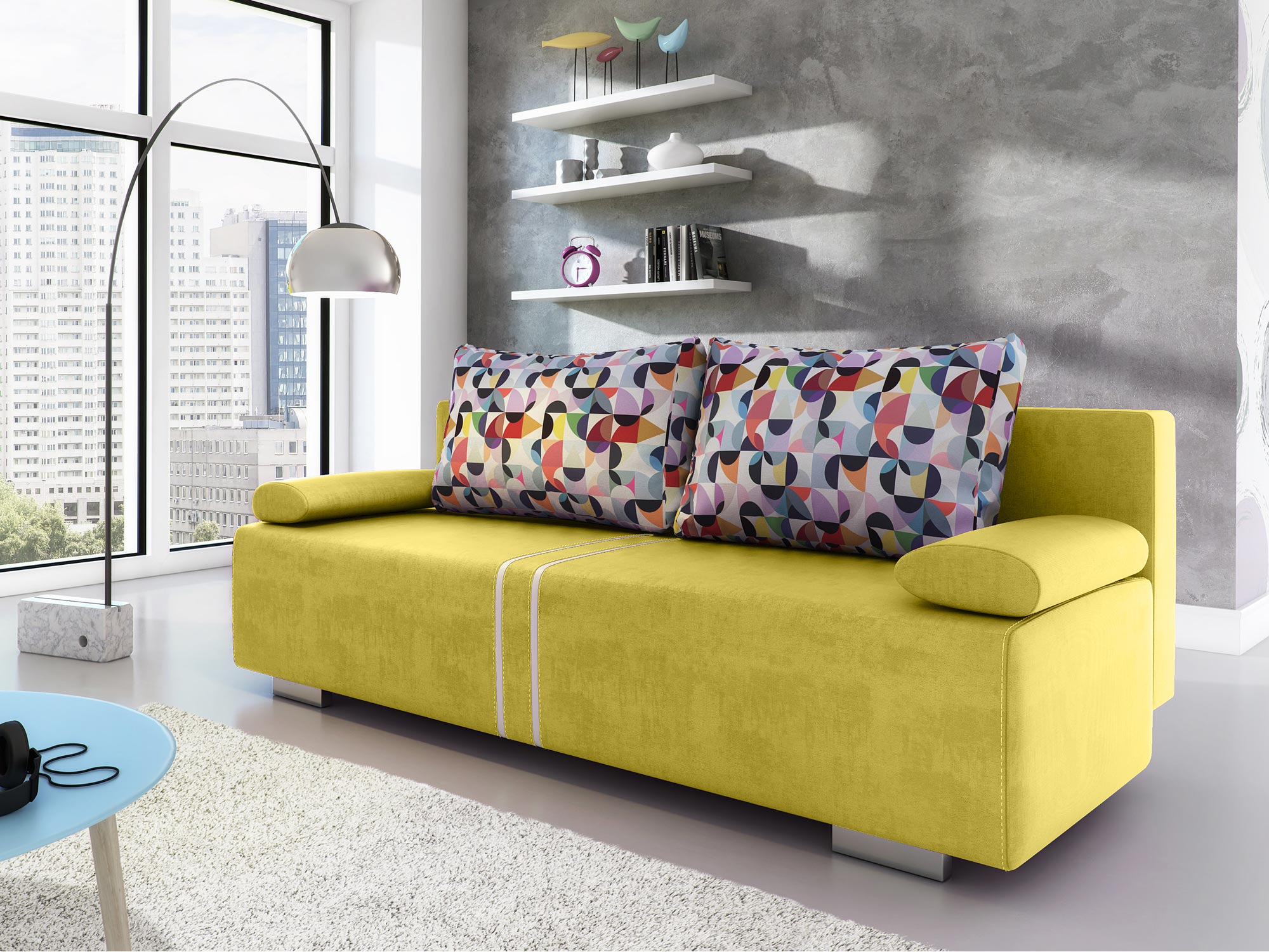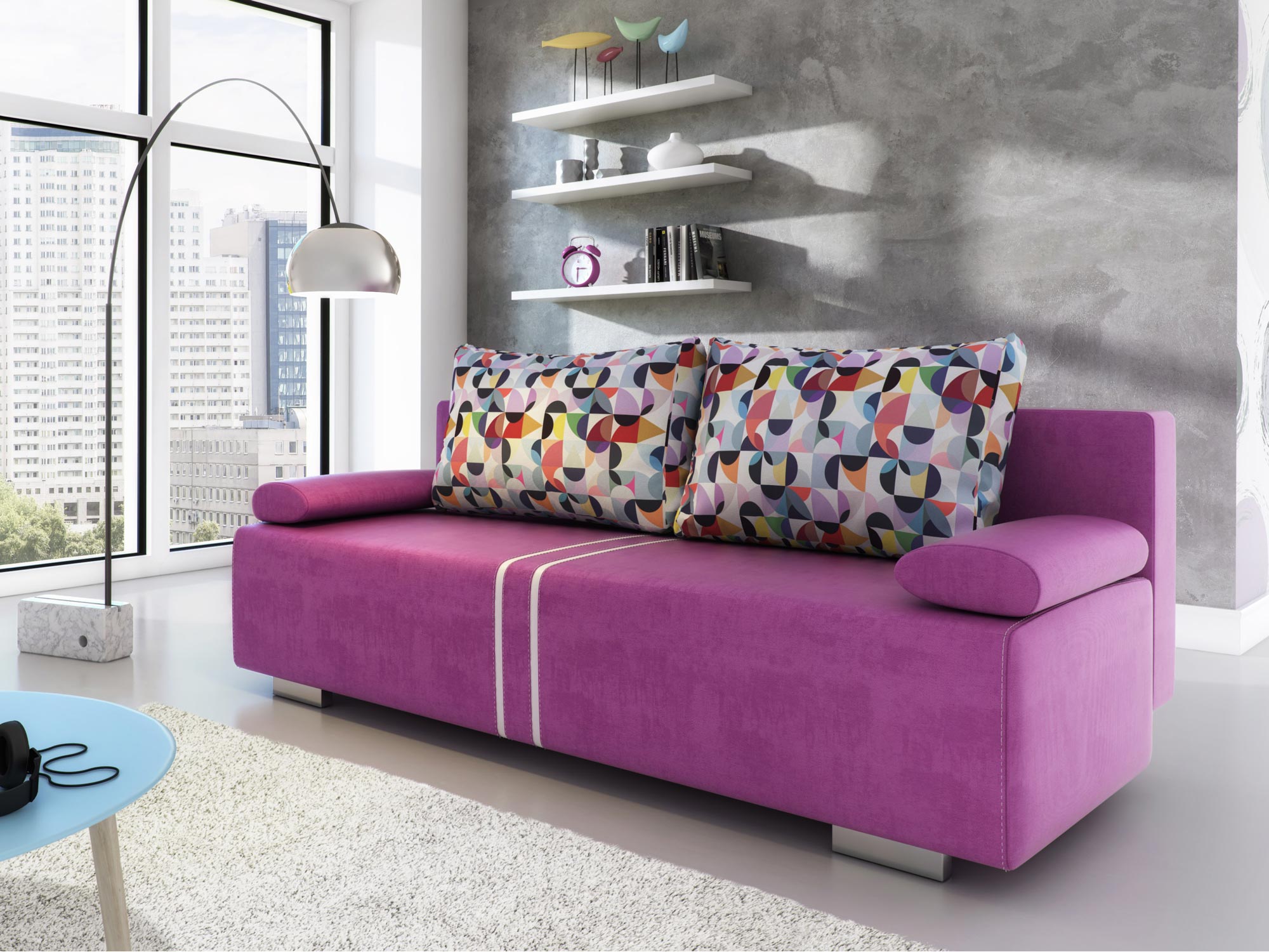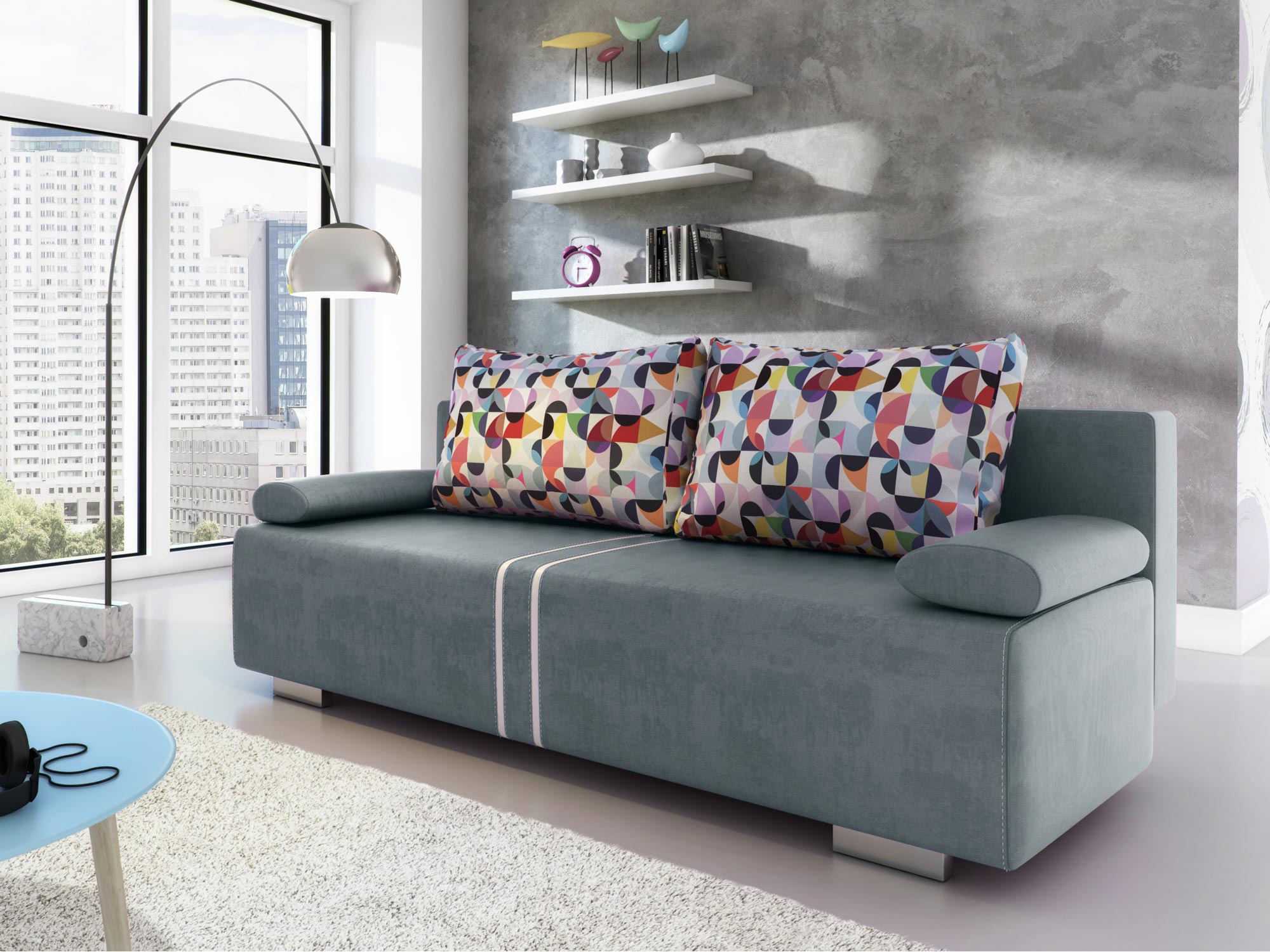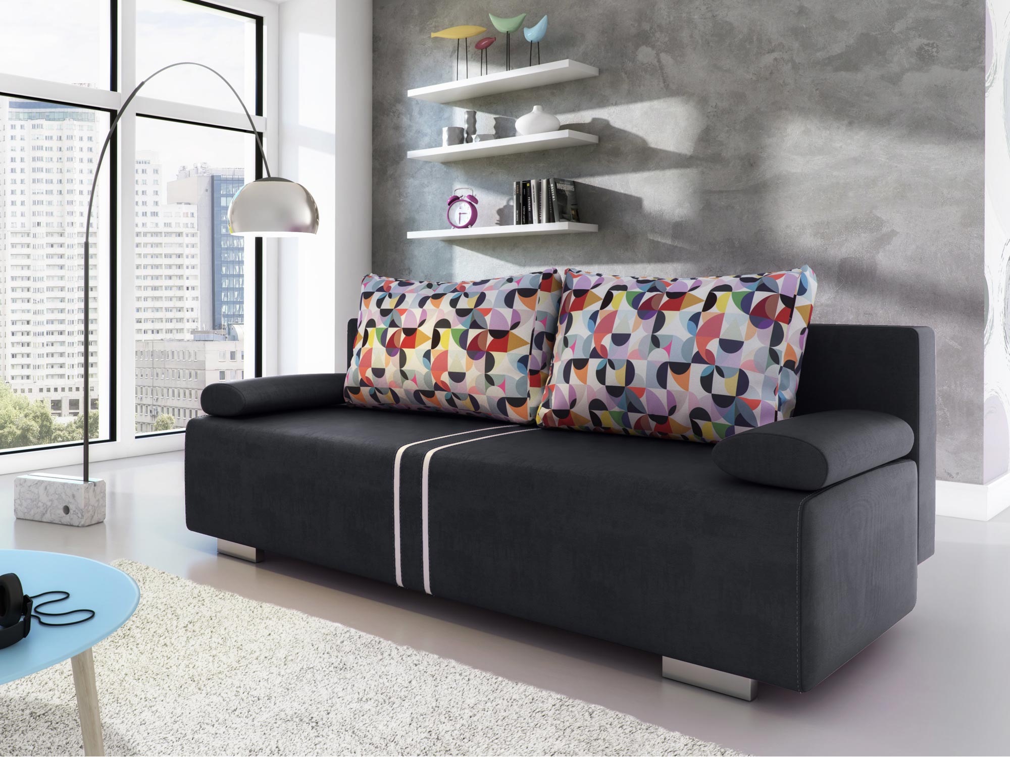 Przede wszystkim sofa wyróżnia się stylowym dekorem w postaci dwóch pionowych pasków, które przebiegają przez jej środek. Co więcej mebel ten wyposażono w przestronny pojemnik w którym bez problemu zmieszczą się kołdry, koce czy poduszki. Model ten posiada dodatkowo automat wspomagający rozkładanie, dzięki czemu jest to proste i szybkie. Sofa posiada również siedzisko wypełnione sprężynami typu bonell, zapewniającymi odpowiednią elastyczność.